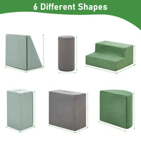 - 6PCS: The foam climbing set Contains 6 parts in 1 package, Triangle, Climbling Triangle, Large cuboid, small cuboid, Half Moon and Cylinder. The 6 can be used independently or combined as you like.