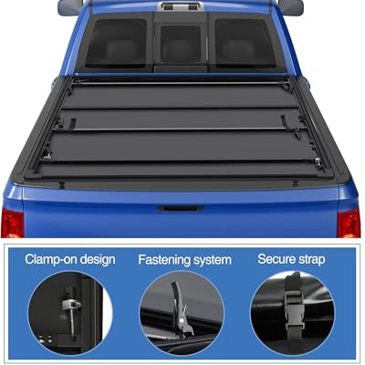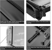- [STURDY CONSTRUCTION]The tonneau cover is constructed with double-layer PVC and aluminum clamps for superb stability. Reinforced corners ensure it stays securely in place, while robust clamps, buckles, and straps prevent slippage.