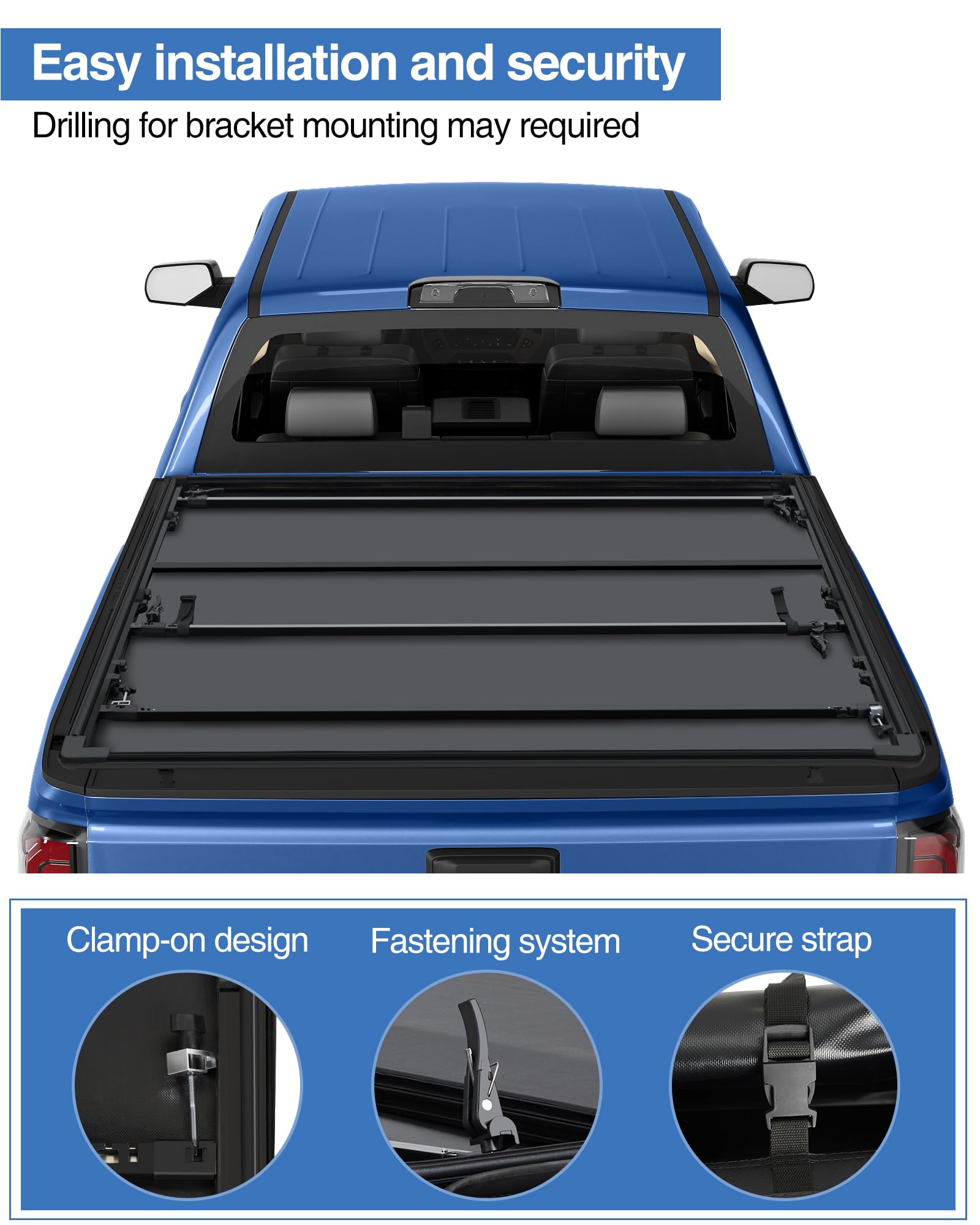 Garvee 6.6ft Quad Fold Soft Tonneau for 14-18 Silverado 1500