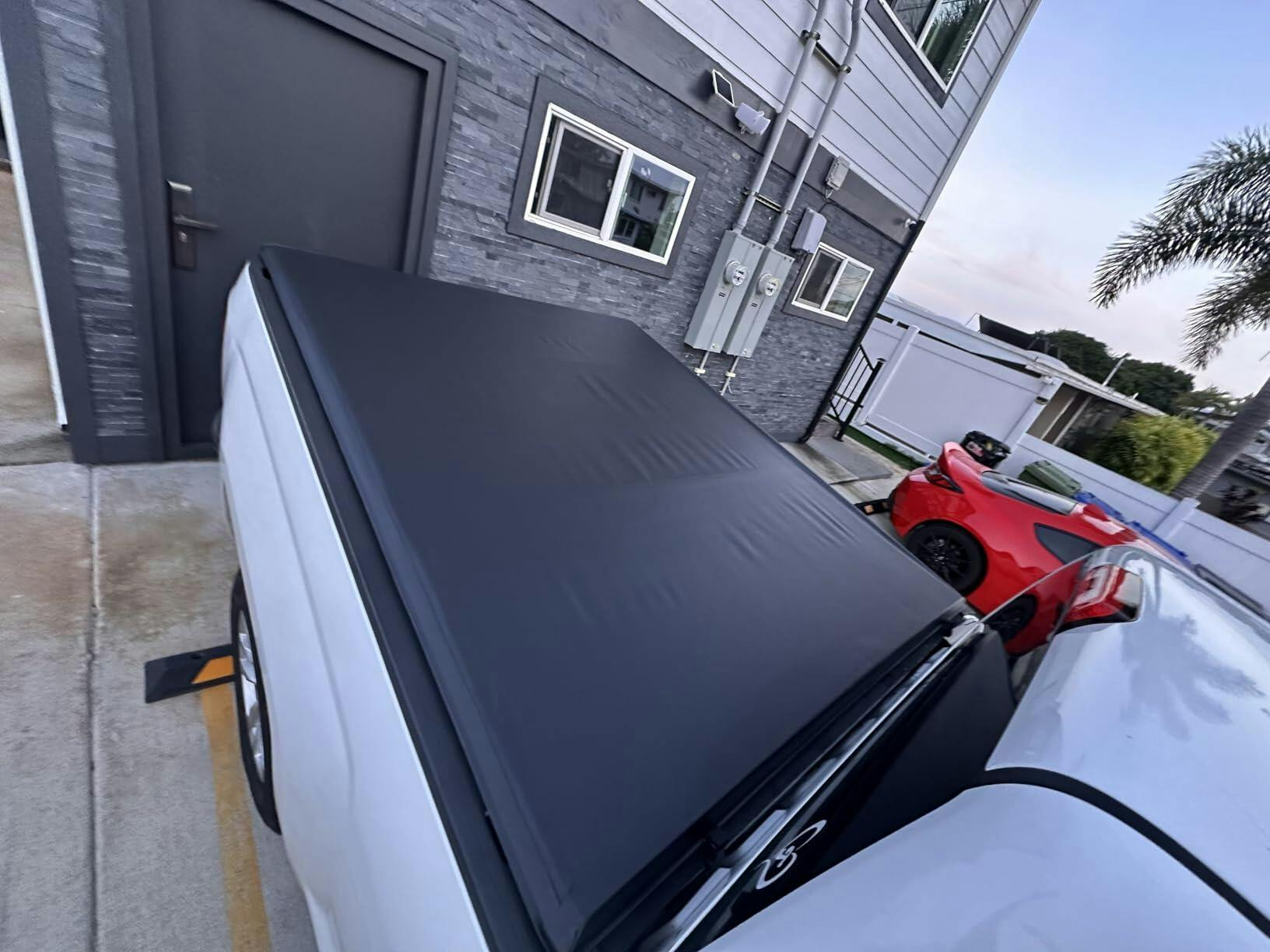 Simple easy way to keep prying eyes and hands out of the bed of your truck. Insalls very easily with no drilling or measuring. Simply lay out the rails and clamp them into place. The vinyl cover has three ribs, and rolls out effortlessly and evenly from either side. Once snapped down at the tailgate, the whole thing pulls snuggly and locks securely. It can only be opened once your tailgate is down, as the release is underneath. If you plan to haul something, simply roll it back like a bed sheet, and secure it against your cab out of the way.I liked this design and simplicity so much, I sold my over the rails toolbox (in the pic sitting sideways in the bed) on fb marketplace and bought a used trunk style box that fits below the rails. When all was said and done, I ended up with more storage space in the box, and entire bed worth of space that can now be secured under the cover, and even made $20 on the tool box swap.Something worth noting. When you roll out the cover and secure it to the tailgate end, it will fall into place and secure to the rails via Velcro as it stretches out lengthwise. However, I would also then suggest pulling with your fingers from either side, then pushing down on the Velcro to get a good solid stretch widthwise. The first night I did not do this, and we got over 2" of rain. As you can see, puddles collected and I noticed it flapping at highway speeds (see pic and video). However, if you stretch out the cover sideways to the two Velcro's sides, you won't have this issue.In summary this is a very affordable way to secure your belongings but still allow full functionality of your bed when you need it. Rolling open or closed literally takes 30 seconds, and this thing stores out of the way very nicely. Great product.