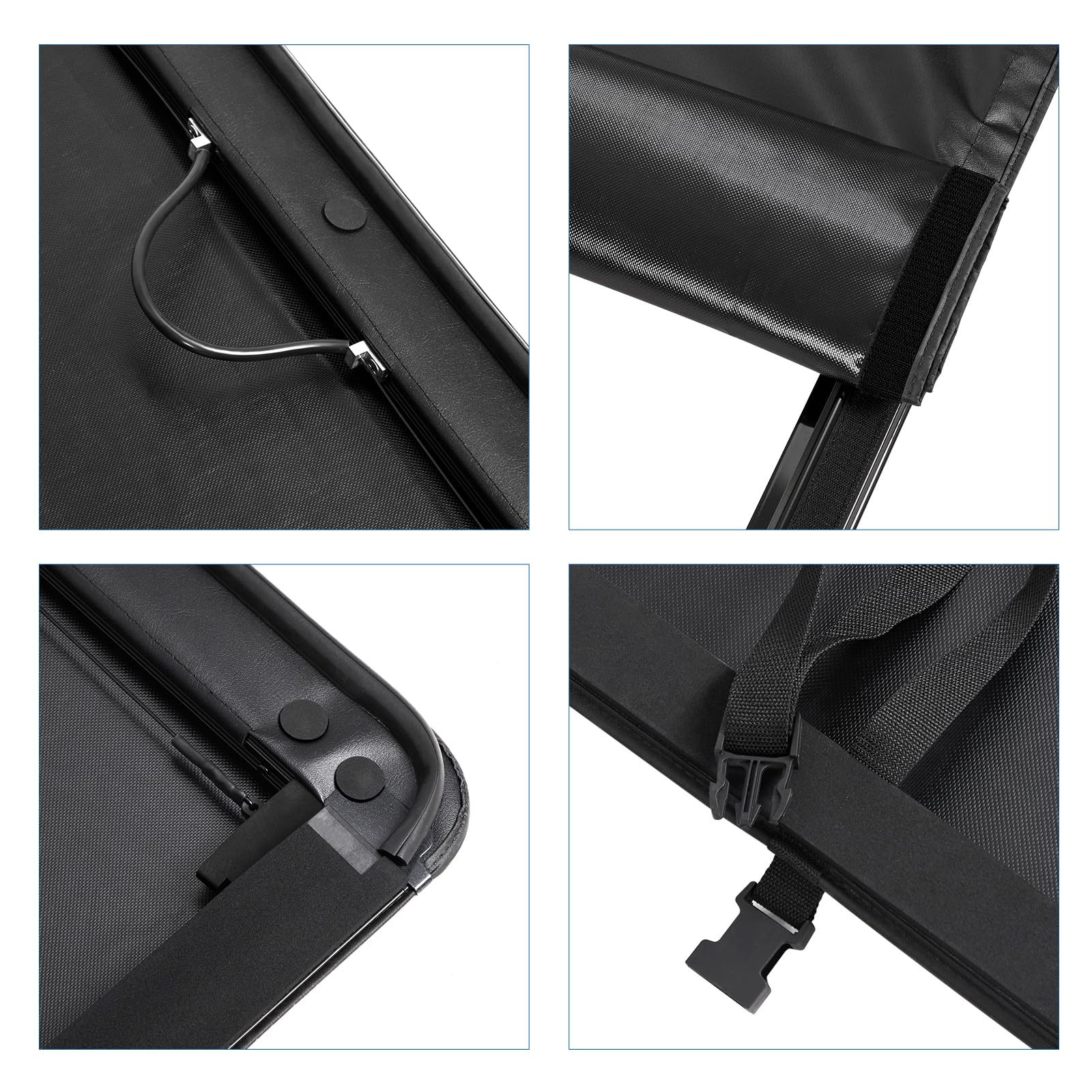 Simple easy way to keep prying eyes and hands out of the bed of your truck. Insalls very easily with no drilling or measuring. Simply lay out the rails and clamp them into place. The vinyl cover has three ribs, and rolls out effortlessly and evenly from either side. Once snapped down at the tailgate, the whole thing pulls snuggly and locks securely. It can only be opened once your tailgate is down, as the release is underneath. If you plan to haul something, simply roll it back like a bed sheet, and secure it against your cab out of the way.I liked this design and simplicity so much, I sold my over the rails toolbox (in the pic sitting sideways in the bed) on fb marketplace and bought a used trunk style box that fits below the rails. When all was said and done, I ended up with more storage space in the box, and entire bed worth of space that can now be secured under the cover, and even made $20 on the tool box swap.Something worth noting. When you roll out the cover and secure it to the tailgate end, it will fall into place and secure to the rails via Velcro as it stretches out lengthwise. However, I would also then suggest pulling with your fingers from either side, then pushing down on the Velcro to get a good solid stretch widthwise. The first night I did not do this, and we got over 2" of rain. As you can see, puddles collected and I noticed it flapping at highway speeds (see pic and video). However, if you stretch out the cover sideways to the two Velcro's sides, you won't have this issue.In summary this is a very affordable way to secure your belongings but still allow full functionality of your bed when you need it. Rolling open or closed literally takes 30 seconds, and this thing stores out of the way very nicely. Great product.