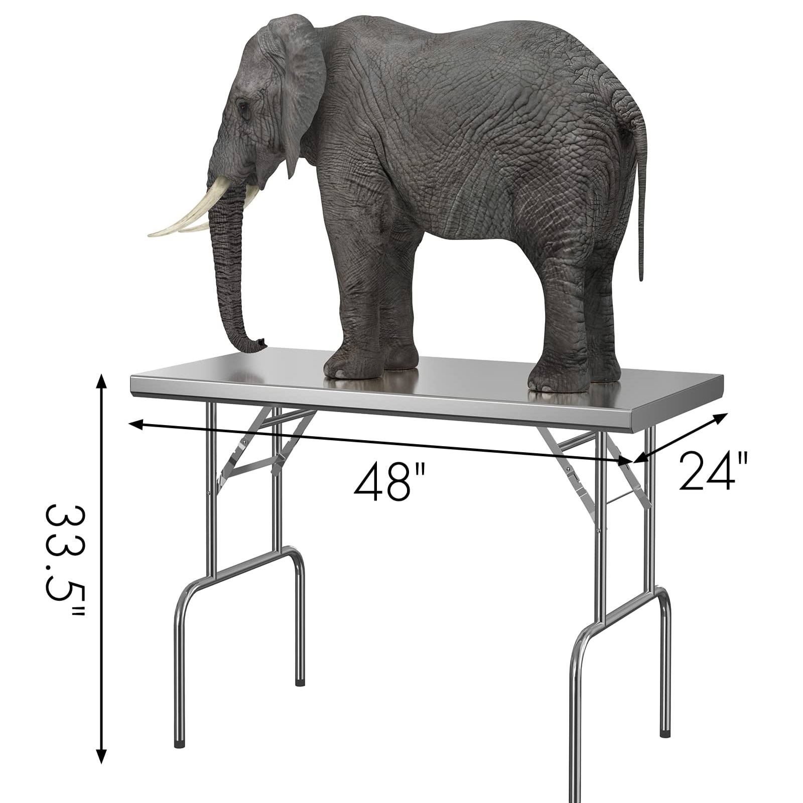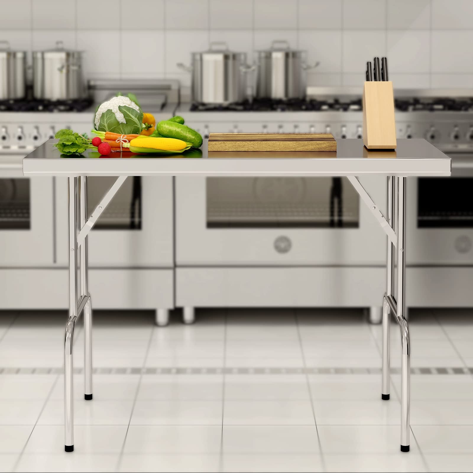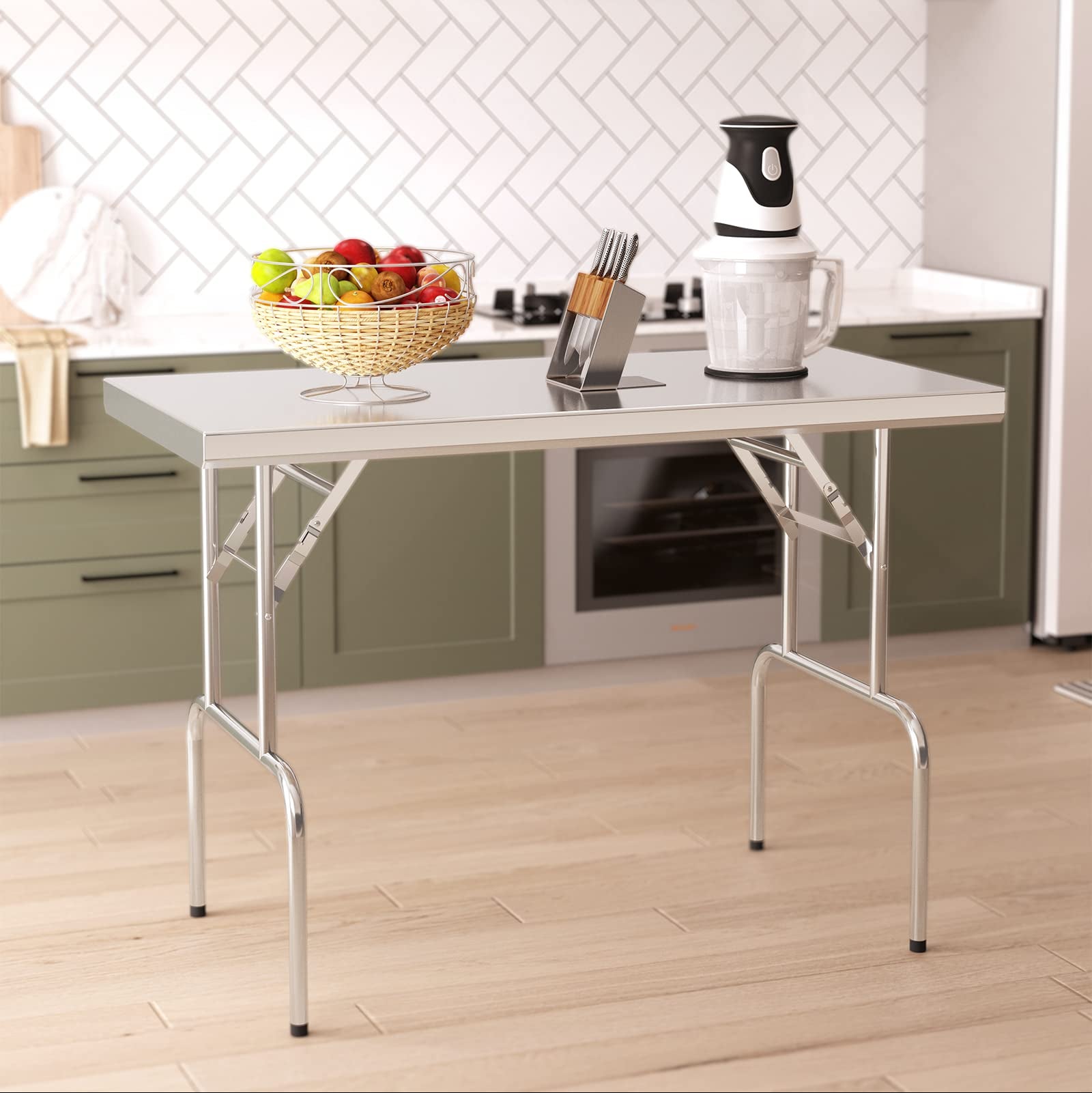 GARVEE 48"L x 24"W x 33.5"H Stainless Steel Folding Table - Foldable Prep Table for Home, Kitchen, Restaurant, and Warehouse Use