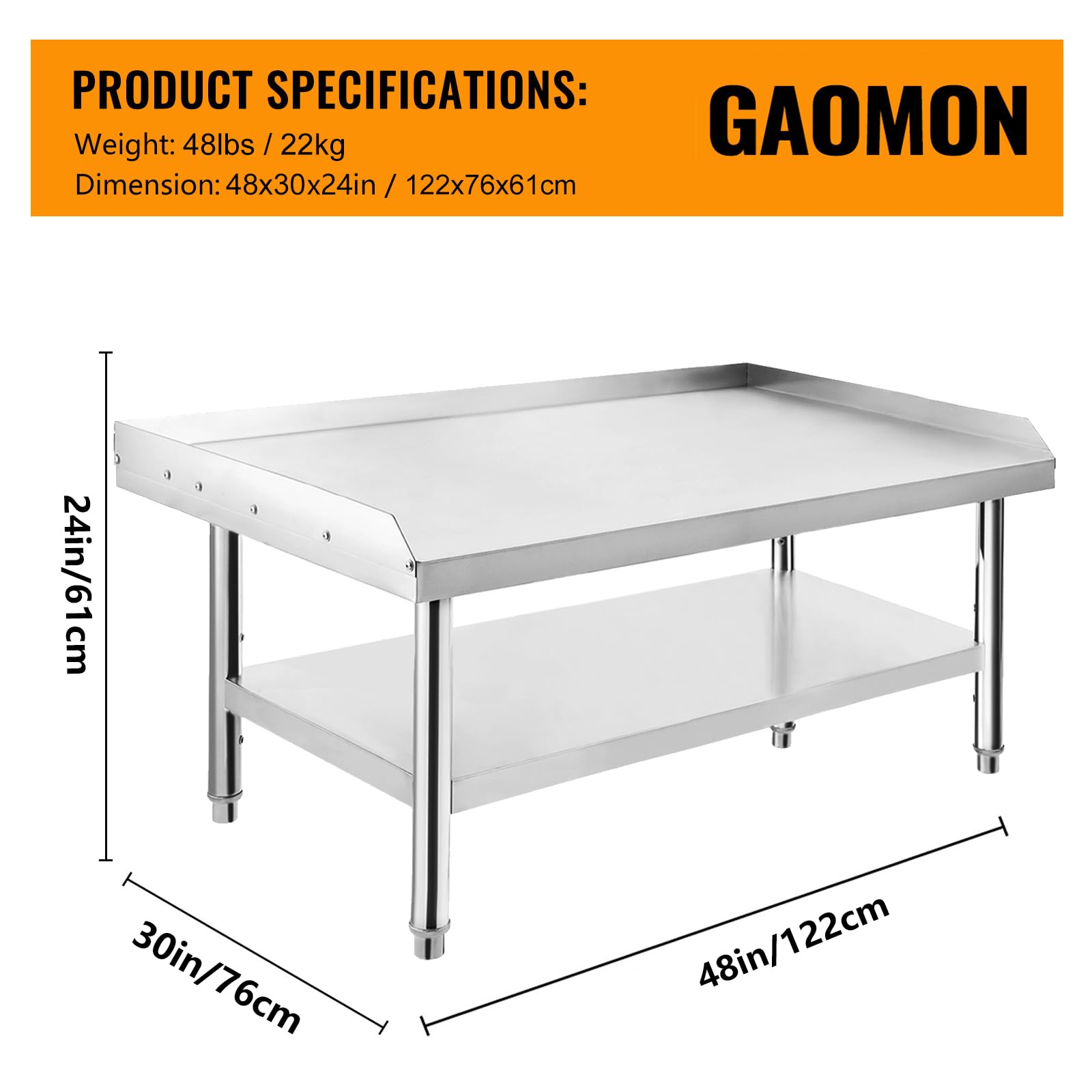 - 【Storage Operation 2-in-1】 This stainless steel table with an overall size of 48 x 30 x 24 inches allows you to save time by keeping standard cooking equipment on hand. In addition, the adjustable bottom shelf increases storage space without taking up any additional space.