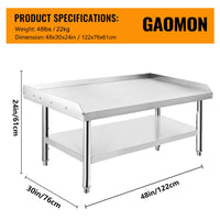GARVEE 48"L x 30"W x 24"H Stainless Steel Grill Stand Table - Heavy-Duty, Adjustable Undershelf, Easy to Assemble, for Home and Commercial Kitchens