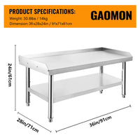 GARVEE 36"L x 28"W x 24"H Stainless Steel Grill Stand Table - Heavy-Duty, Adjustable Undershelf, Easy to Clean, for Home, Restaurant, and Kitchen Use