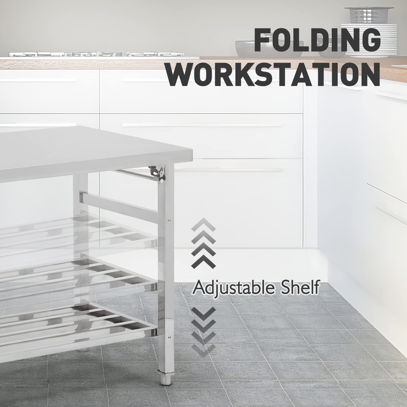 Garvee 48"L x 24"W x 32"H Stainless Steel Table NSF Commercial Heavy Duty Folding Work Table with Undershelf Ideal for Kitchen Laundry and Outdoor Cooking