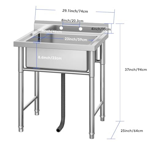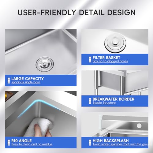 GARVEE 29"W x 25"D x 37"H Stainless Steel Freestanding Utility Sink - Single Bowl with Anti-Splash Design for Commercial Kitchens, Restaurants, Laundry, and Garage (No Faucet)