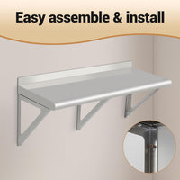 Garvee Stainless Steel Wall Shelf NSF Commercial Wall-Mounted Shelving Appliance & Equipment Metal Shelving with a Backsplash and Two Brackets for Kitchen Restaurant Garage Laundry Utility Room