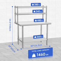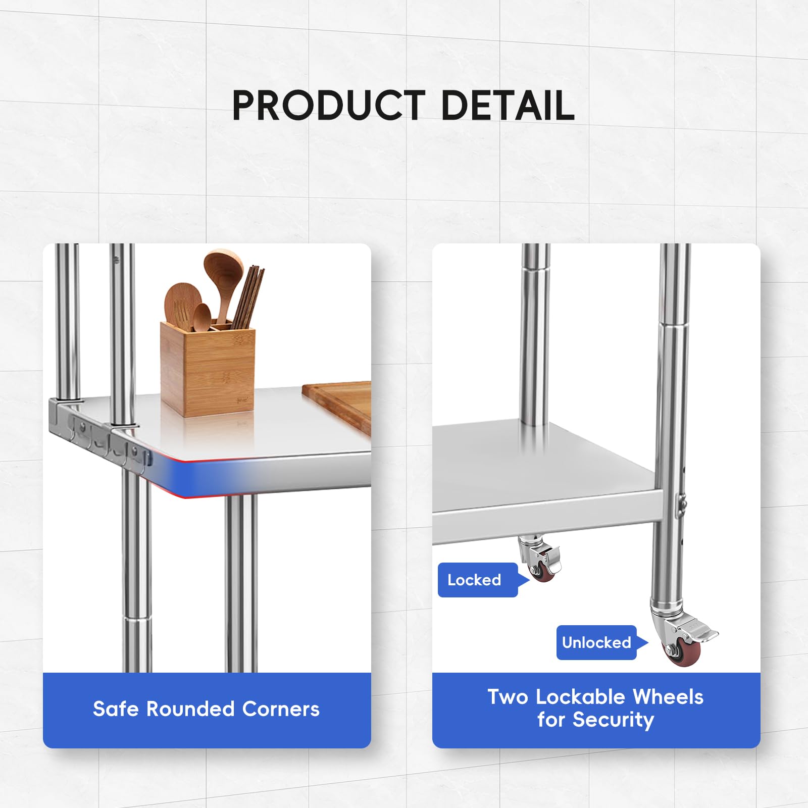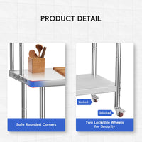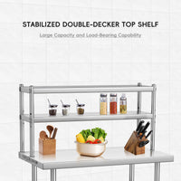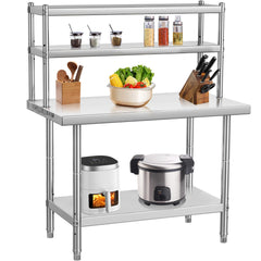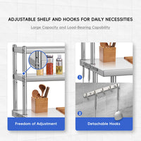 Garvee 48"L x 24"W x 35"H Stainless Steel Work Table + Heavy Duty + Adjustable Shelf & Hooks + Corrosion Resistant + High Bearing Capacity + Kitchen, Garage, Restaurant Use