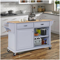 Garvee Natural Wood Top Storage Cabinet with 5 Sturdy Casters, Spice Rack, Towel Holder, 2 Storage Drawers for Kitchen, Entrance Buffet Cabinet, Gray