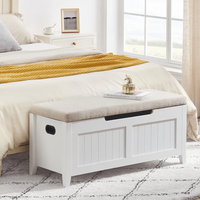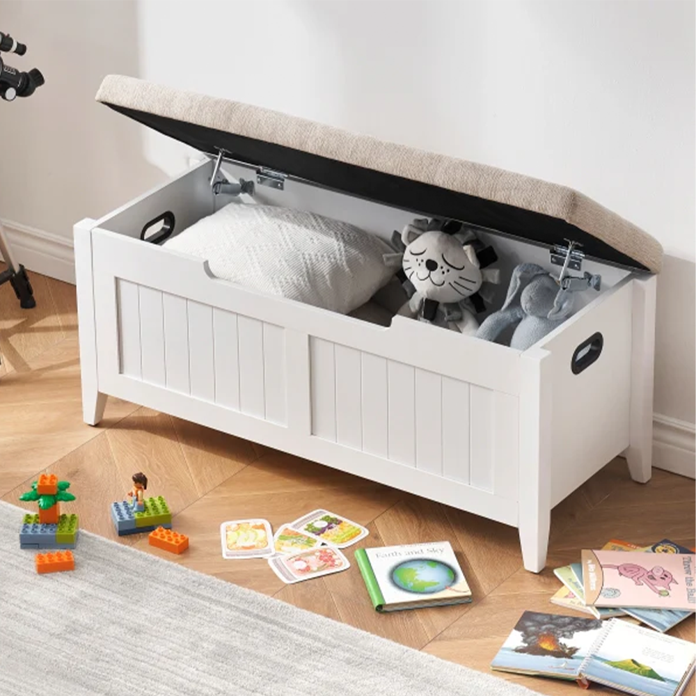 Garvee Storage Chest with Flip-Top, Upholstered Bench, 2 Safety Hinges, Wooden Construction, 39.4 x 15.7 x 18.1 Inches, White, Entryway, Bedroom, Living Room