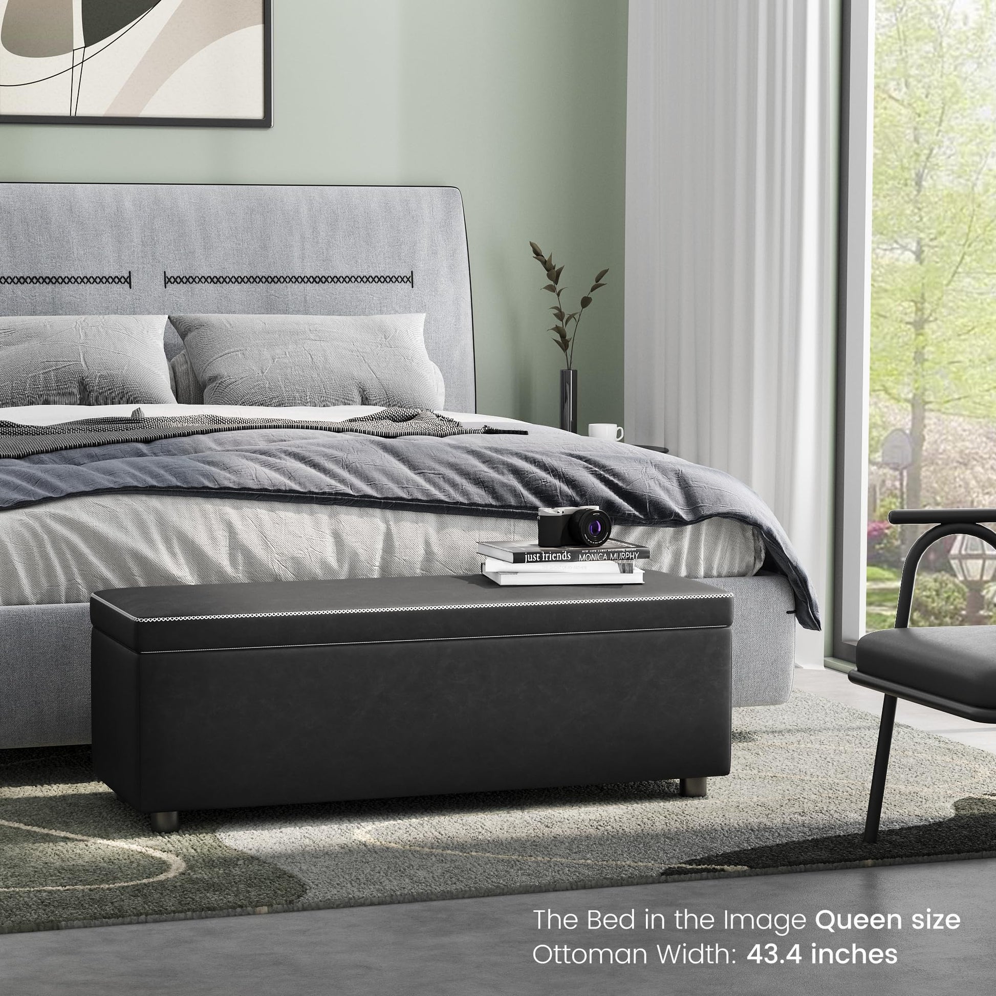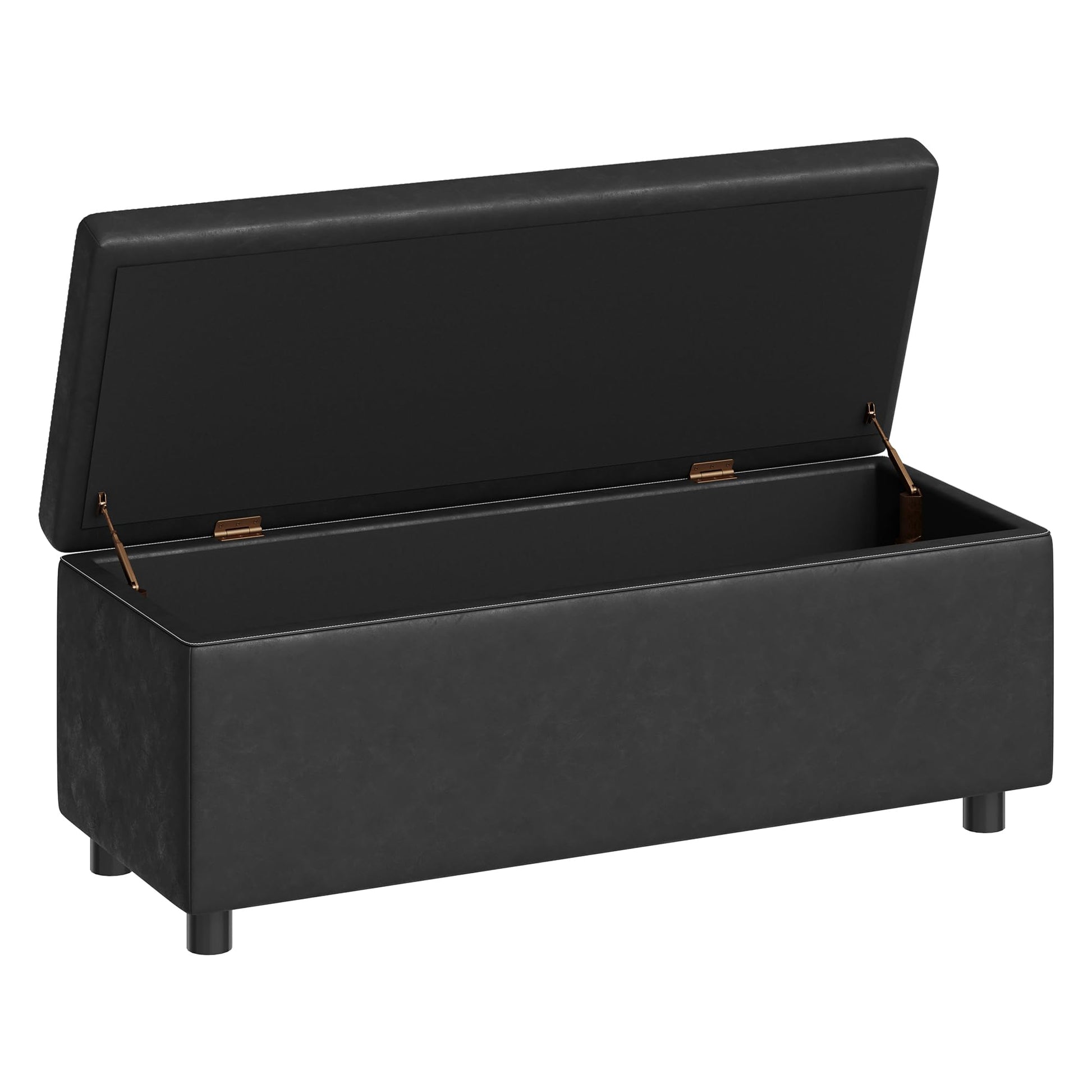 Garvee Storage Ottoman Bench, Mid-Century Modern Storage Bench for Bedroom, Synthetic Leather with Stitching, Safety Hinges, Loads 680 Lb, Black