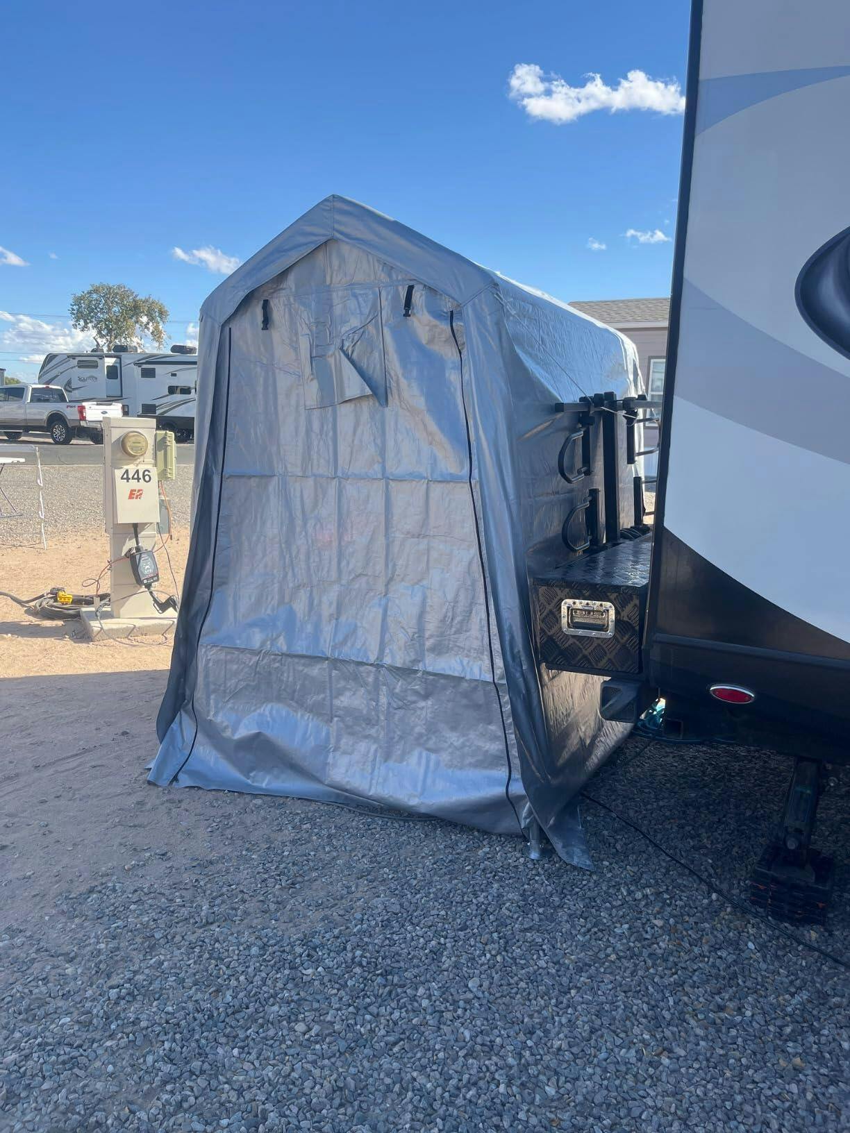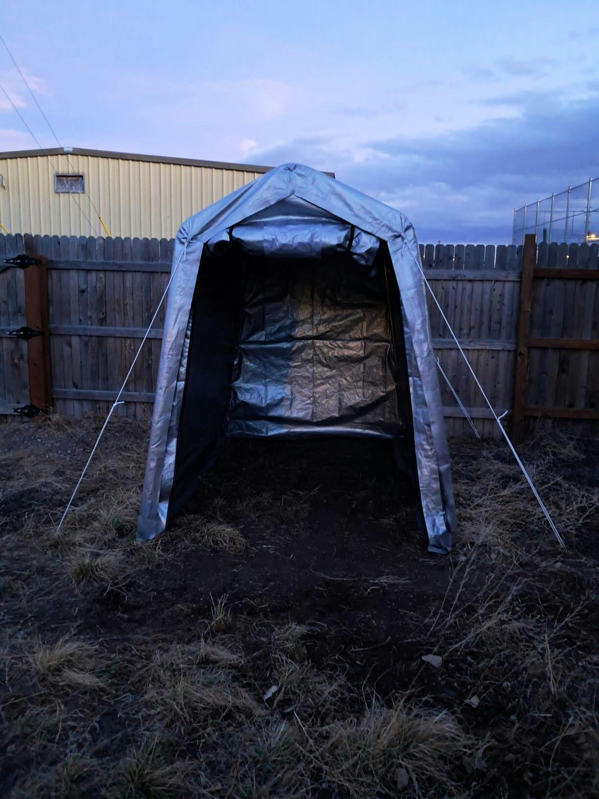 We moved, and needed a temp spot for my harley to be out of the elements. Set up was easy by myself. Directons were simple to fallow. Keeping it dry for now, will update once the washington rain kicks in. Also put in a solar light in, which works well too. I will probably put sand bags around the base to keep it in one place along with some lag bolts, instead of the tent stakes that were supplied.