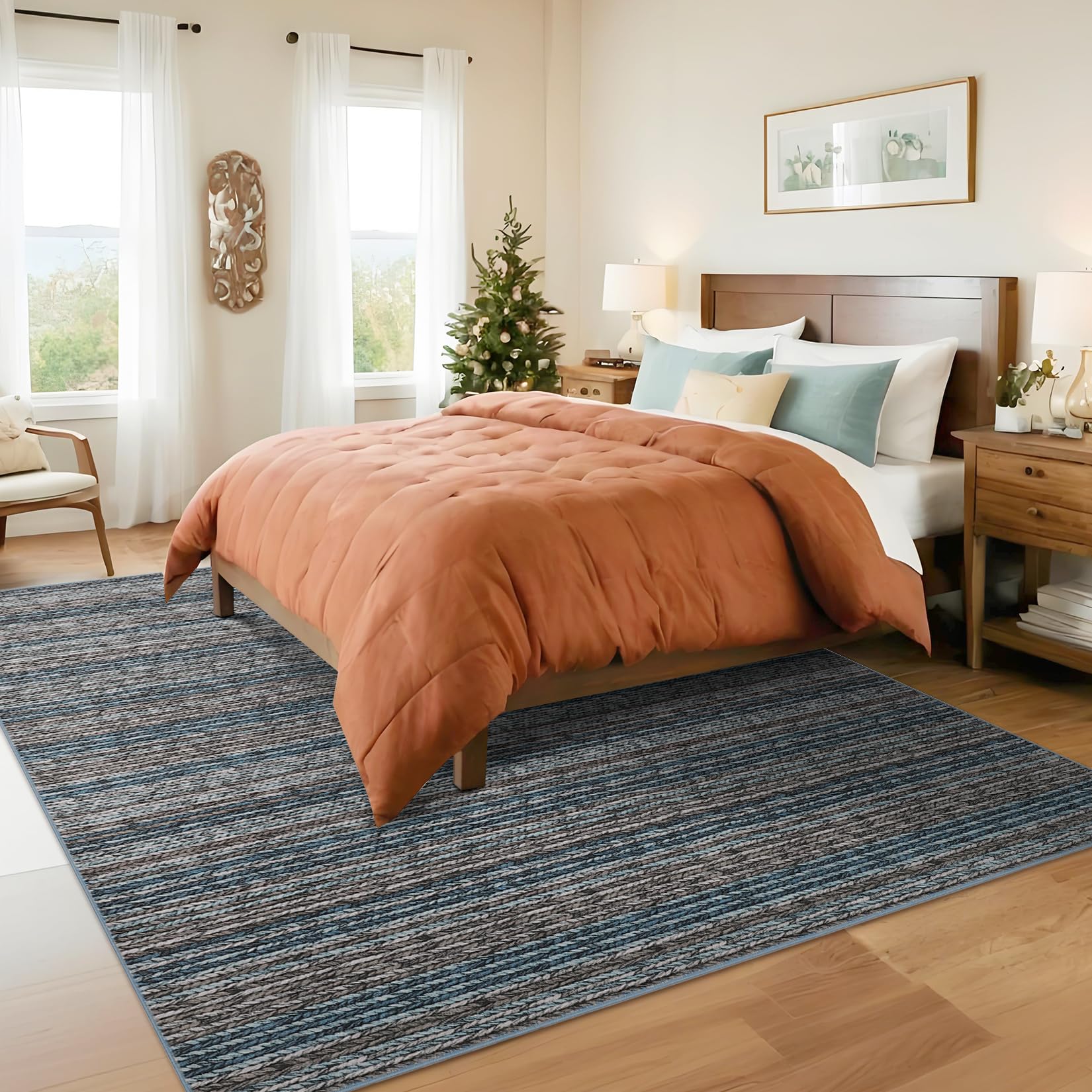 Garvee Striped Washable Rugs for Living Room 5x7 Stain Resistant Area Rug for Bedroom Large Soft Floor Carpet Non Slip Modern Transitional Rug for Dining Room Laundry Kid Room, Blue