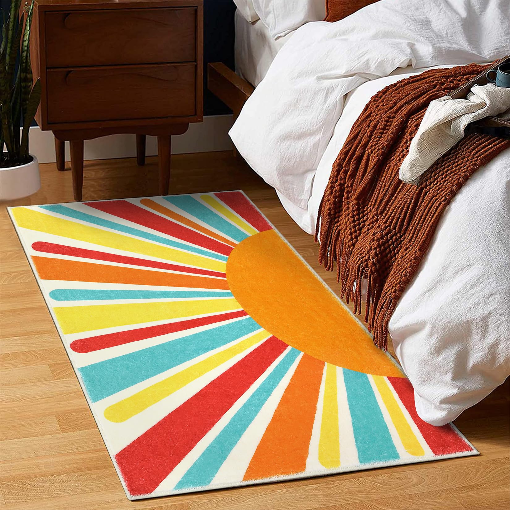 Garvee Sun Rug 2x3 Entryway Rug Washable Small Bedroom Area Rug Non-Slip Stain Resistant Rainbow Nursery Rug Boho Retro Playmat Sunshine Throw Floor Covers Carpet for Living Room Kids Room, Multi