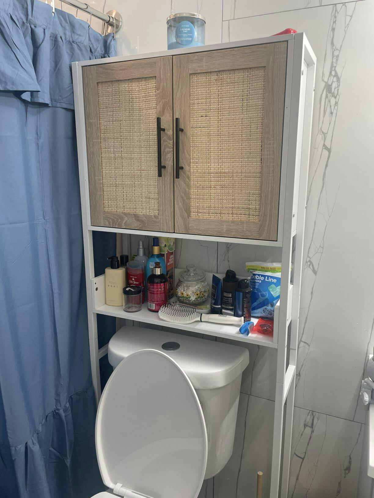 With its over-the-toilet design, adjustable shelves, and rattan door, the GARVEE Storage Cabinet combines smart design with practical storage solutions for any bathroom.