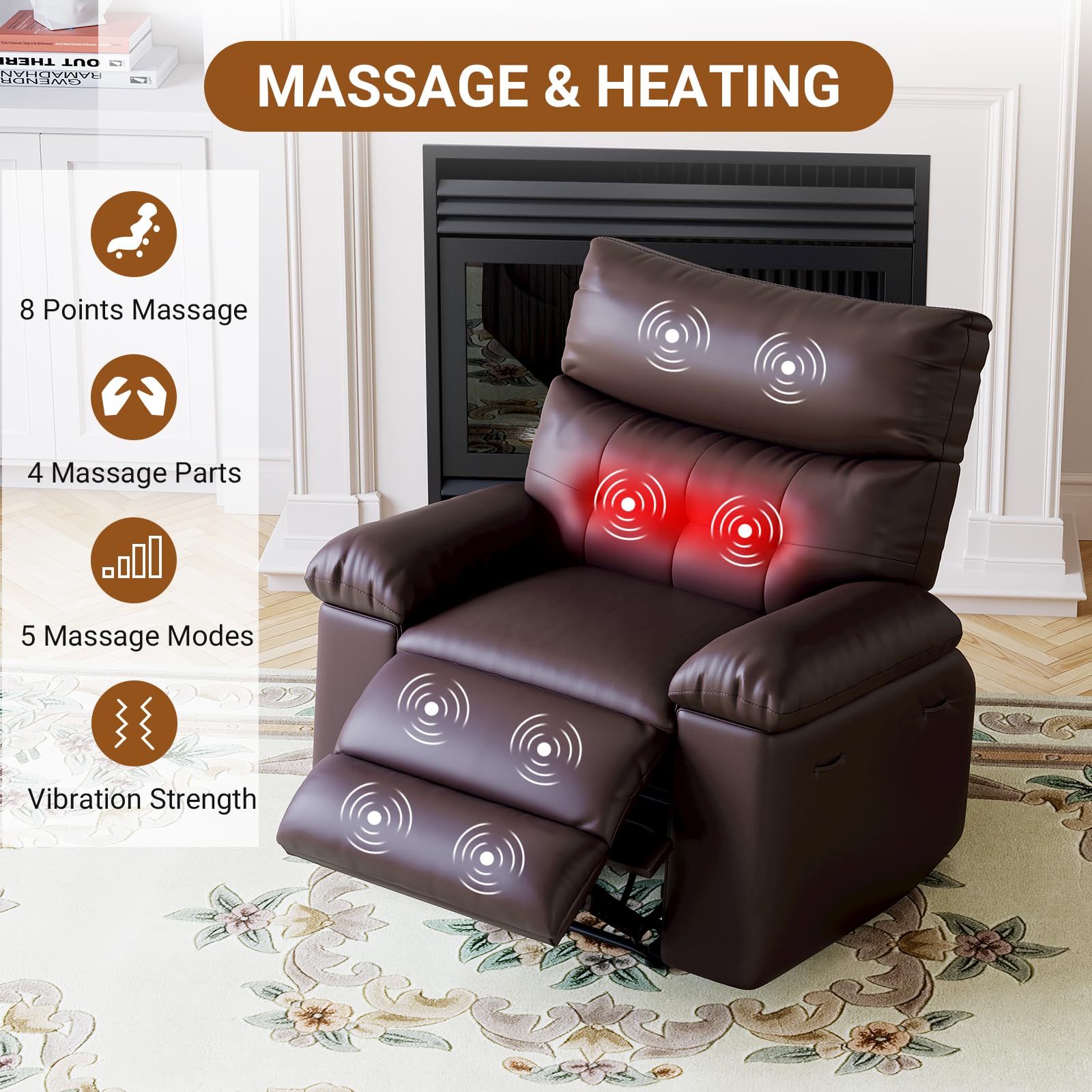 Garvee Swivel Massage Chair, Power Rocking Recliner Chair with Massage and Heating, Oversized Faux Leather Single Sofa Chair, Home Rocking Glider Chairs for Adults, Living Room, Bedroom