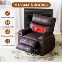 - Massage and Heating: Enjoy ultimate relaxation with this massage recliner featuring 8 powerful massage points targeting your back, lumbar, thighs, and legs.Rocking chair adding lumbar heating promotes blood circulation, effectively reducing fatigue and stress and enhancing your overall relaxation experience.
