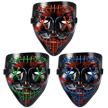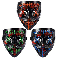 Garvee Halloween Scary Mask LED Mask LED Purge Mask [3PACK] LED Light Up Mask EL Wire Light Up for Festival Cosplay Halloween Costume Halloween Festival Party