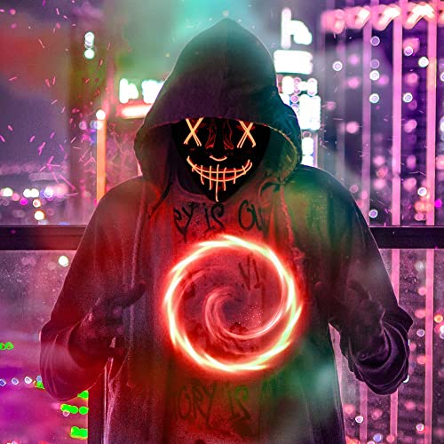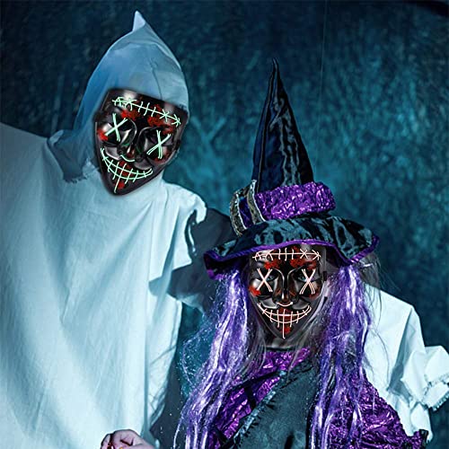 - EYE-CATCHING DESIGN---Halloween light up masks are a conversation starter with eye-catching appearance, and will make sure you stand out of the crowd. Regardless of where you are you'll be getting tons of attention from others who are curious about your mask. Fun for all ages.