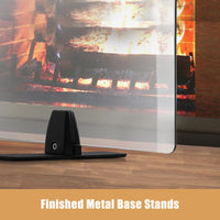 Garvee Tempered Glass Fireplace Screen - 29" x 39", Clear Glass, Metal Black Base