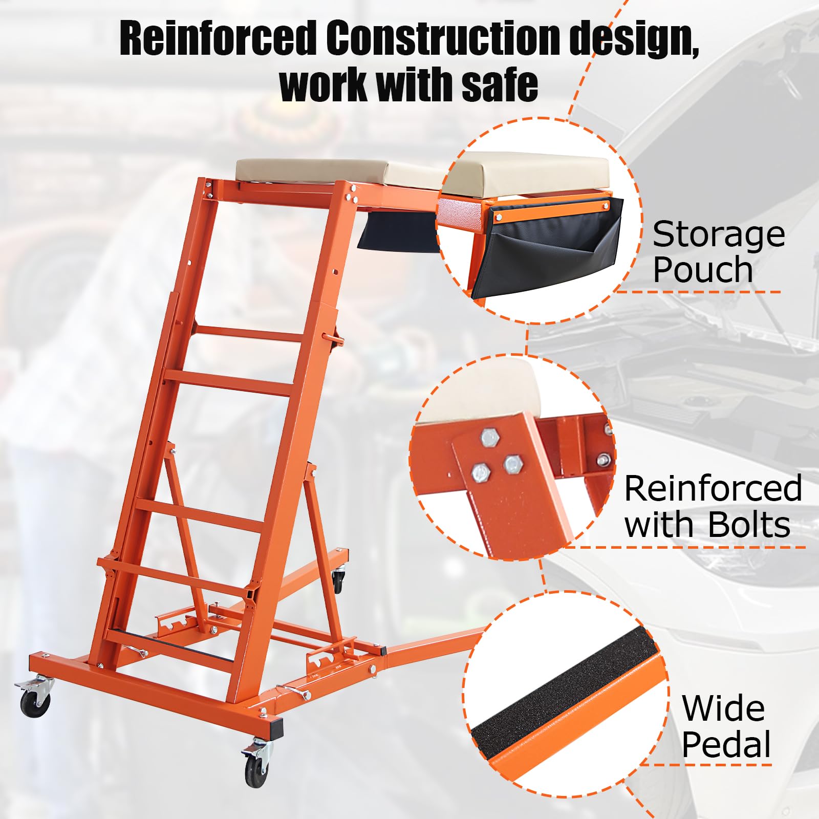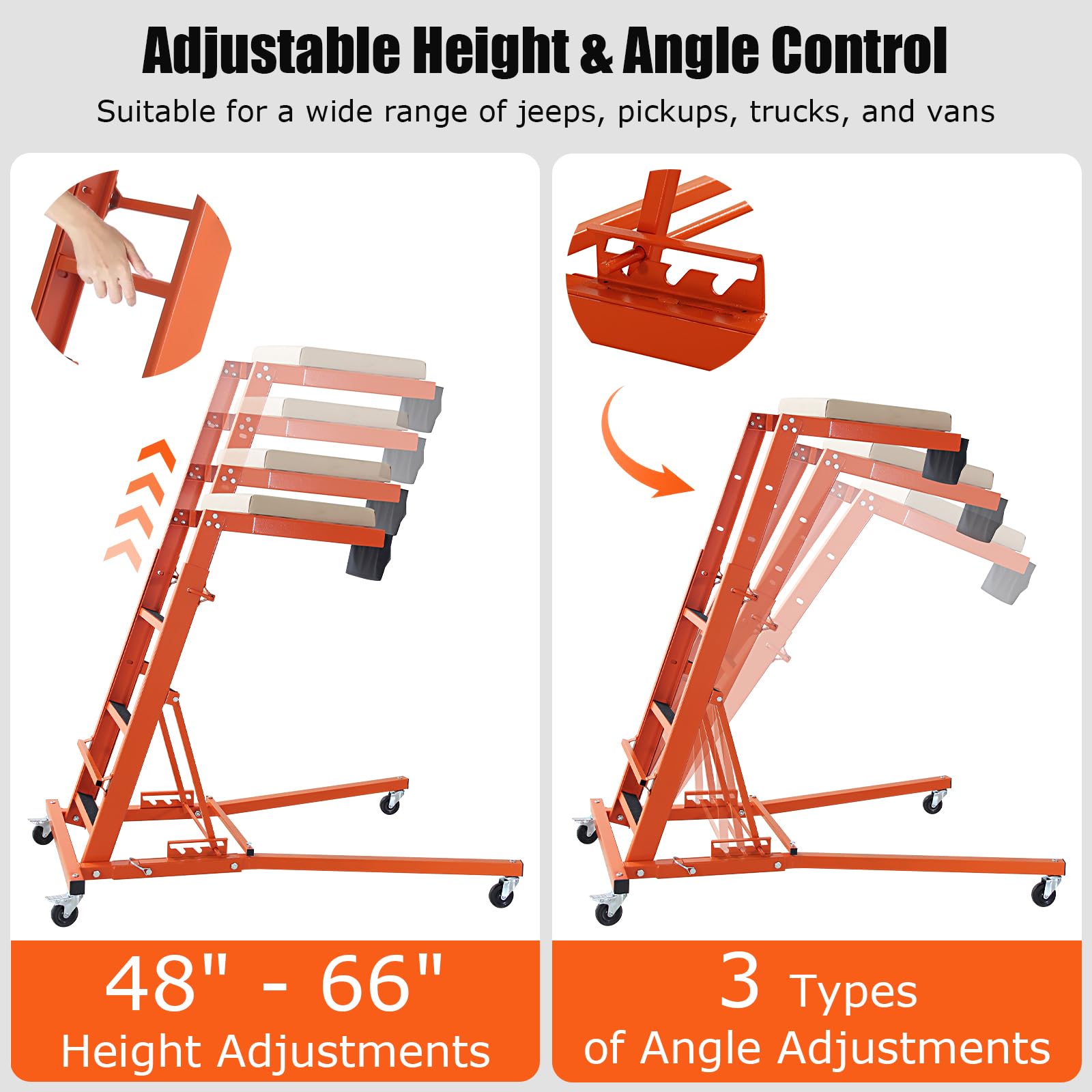 Garvee Automotive Top Creeper, 48"- 66" Adjustable Height, 3 Types of Angle Adjustable Top Automotive Creeper, 400 LBS Capacity Engine Creeper for Home Garage, Workshop Repair Maintenance, Orange