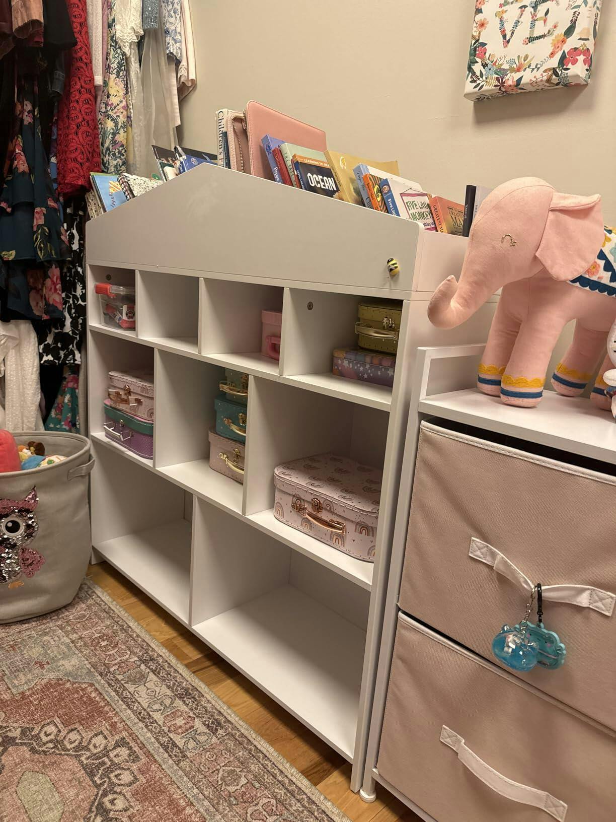 Built-in the top of the bookcase with multiple shelves to store and display reading books, coloring books, comic books, picture books or any other book, which makes the room concise, neat and organized