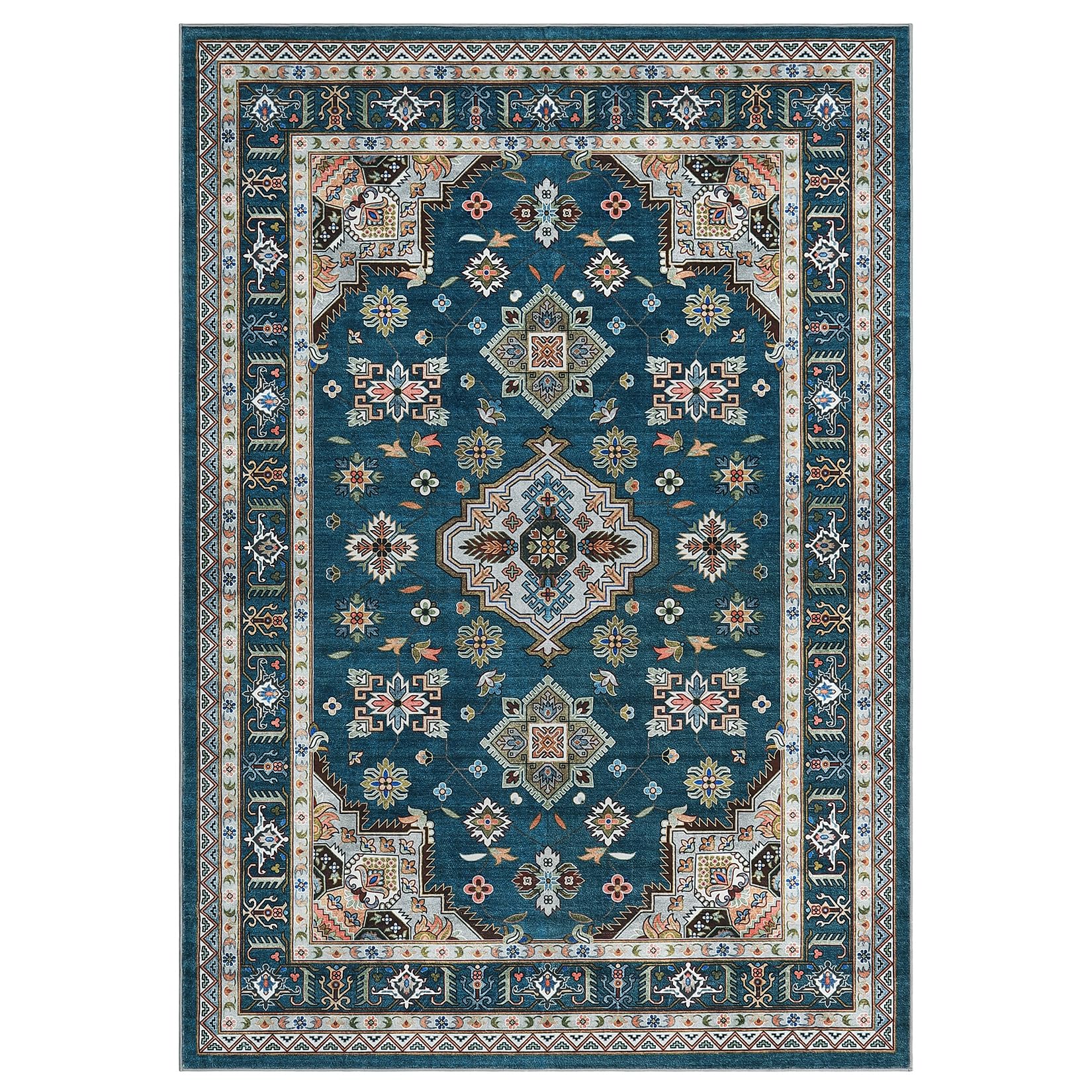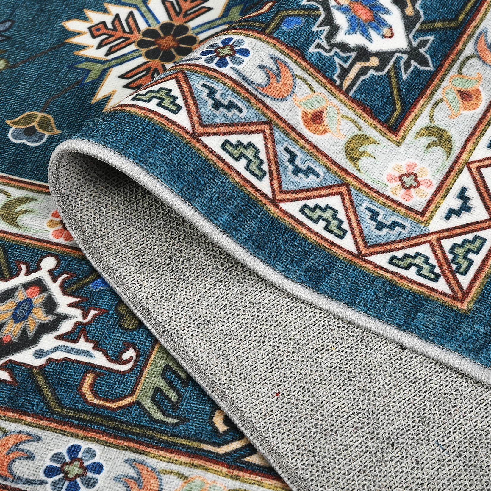 Garvee Traditional Medallion Border Area Rug, 9x12 Washable Vintage Indoor Rug, Ultra-Thin Non-Slip Print Floor Carpet for Living Room Bedroom Kitchen Dining Room, Blue-Green