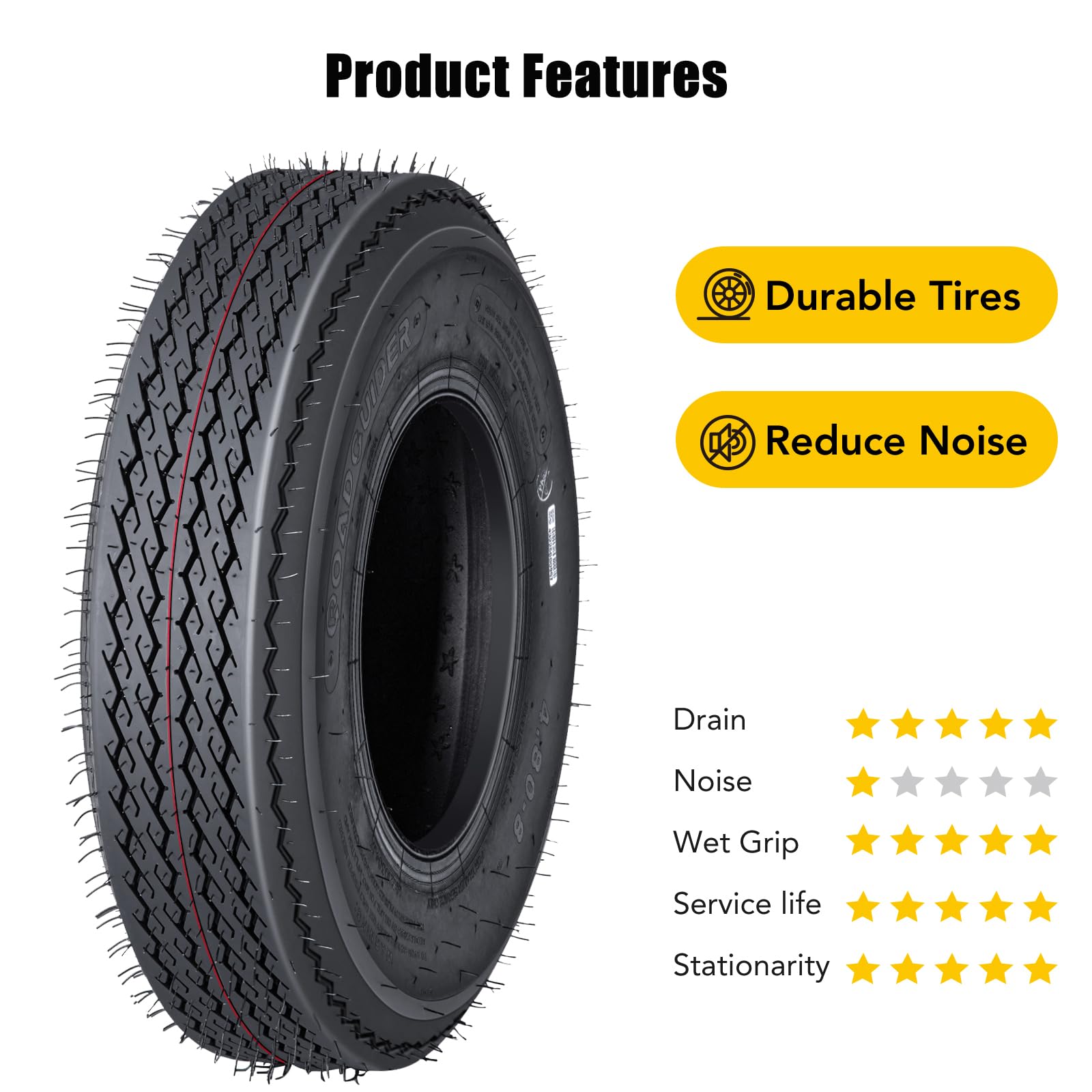 The 4.8mm tread depth on these tires provides excellent traction, reducing the risk of skids and ensuring better handling on various surfaces. With a speed rating of J, you can confidently tow your trailer at a maximum speed of 62 mph (100 km/h), knowing that your tires are built to handle the pace.