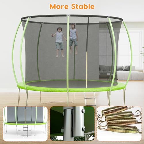 Garvee Outdoor Trampoline with Enclosure & Ladder - ASTM Approved | Sizes 10FT, 12FT, 14FT, 16FT for Kids & Adults (Green, 12FT)