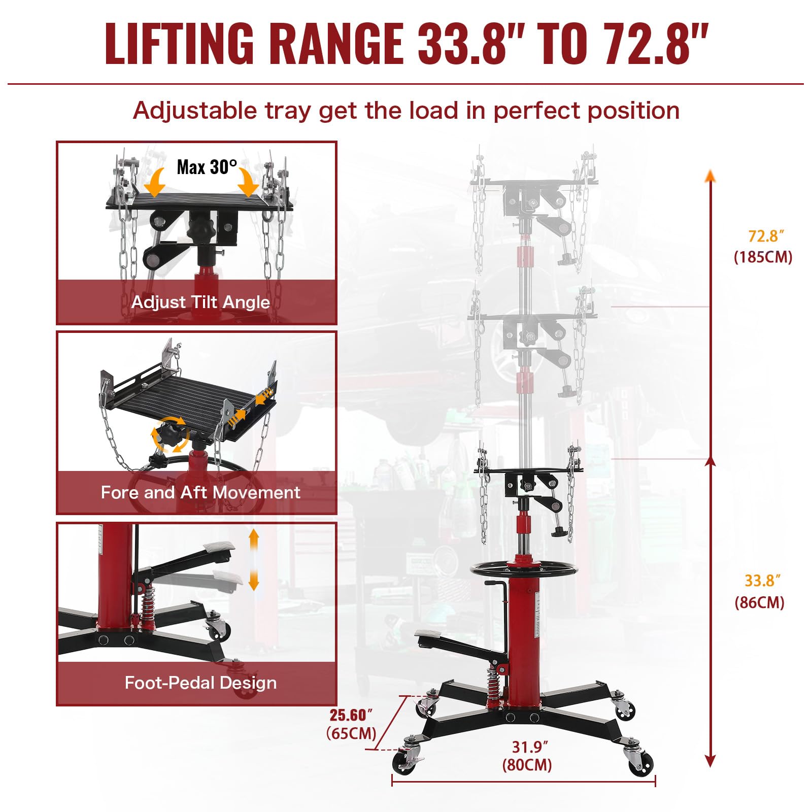 - Heavy-duty Transmission Jack: The jacks are designed and manufactured for long lasting reliability and ease of use.