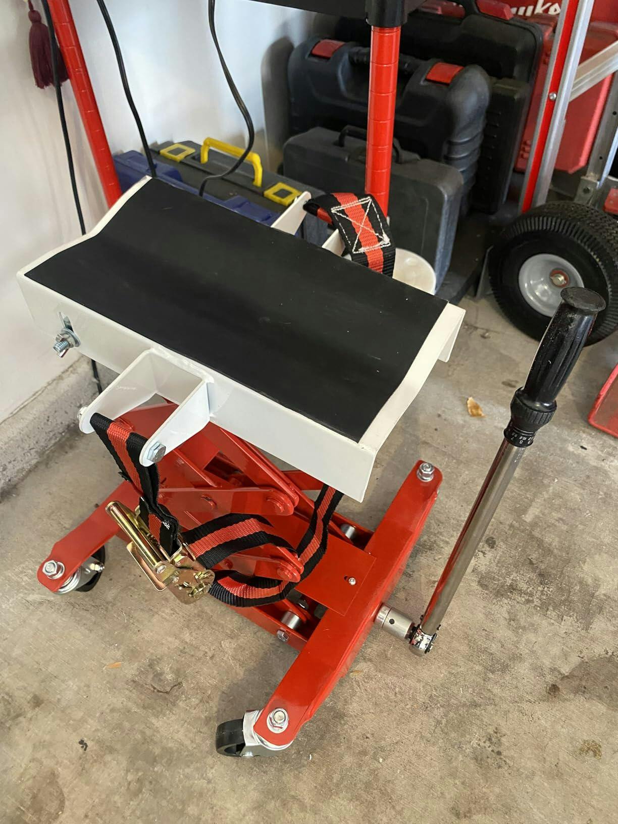 Garvee 450 LBS Capacity Low Profile Transmission Jack with 2M Safety Straps, 7-23 in Lift Range, Heavy Duty Auto Repair Lifting Jack, Red, Compact Vehicles
