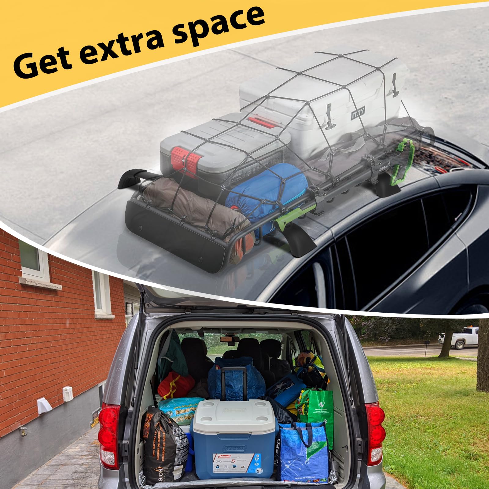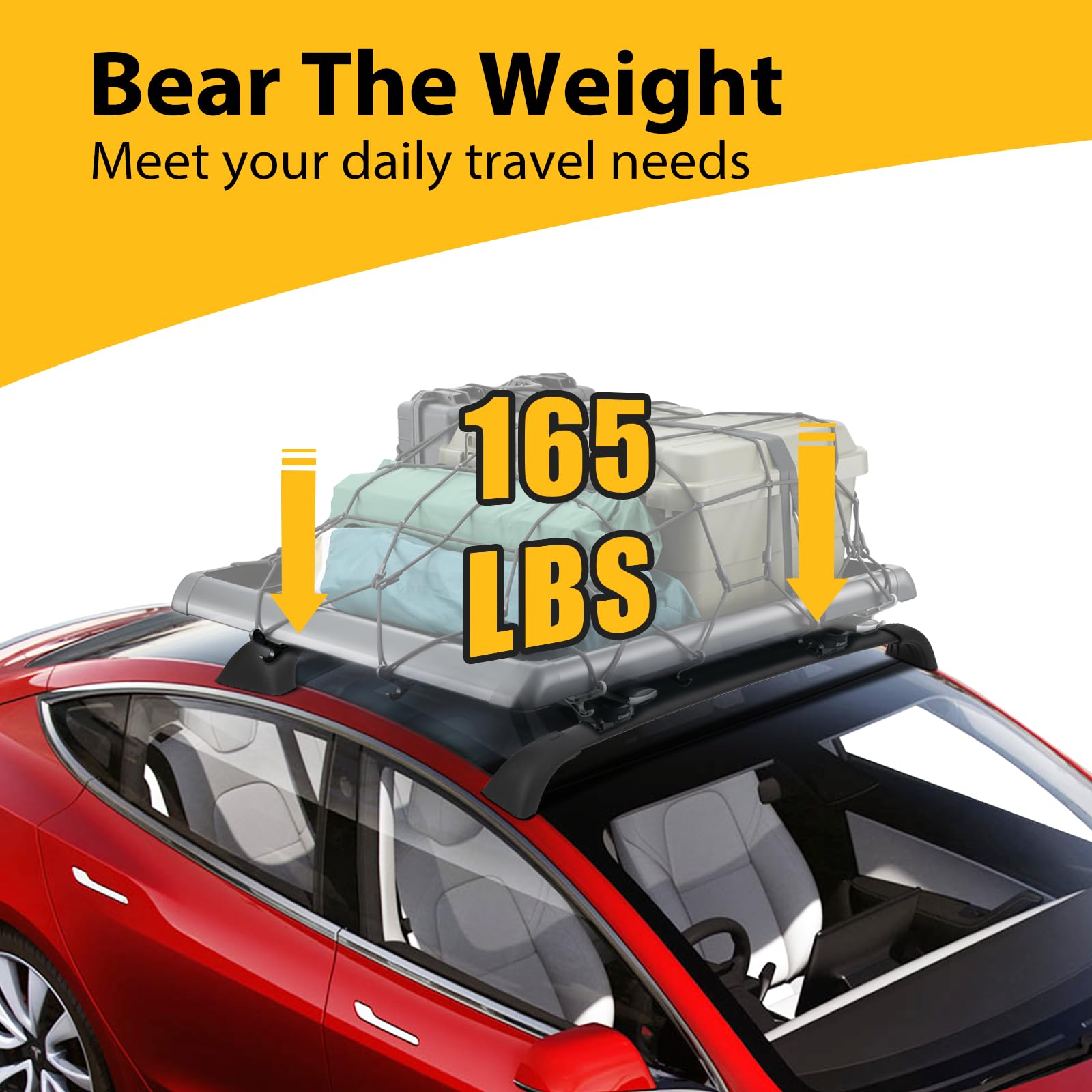 - 【165 lbs Load Capacity】Enhances the vehicle's carrying capabilities, allowing for easy transportation of various large items for a smoother and more enjoyable journey.