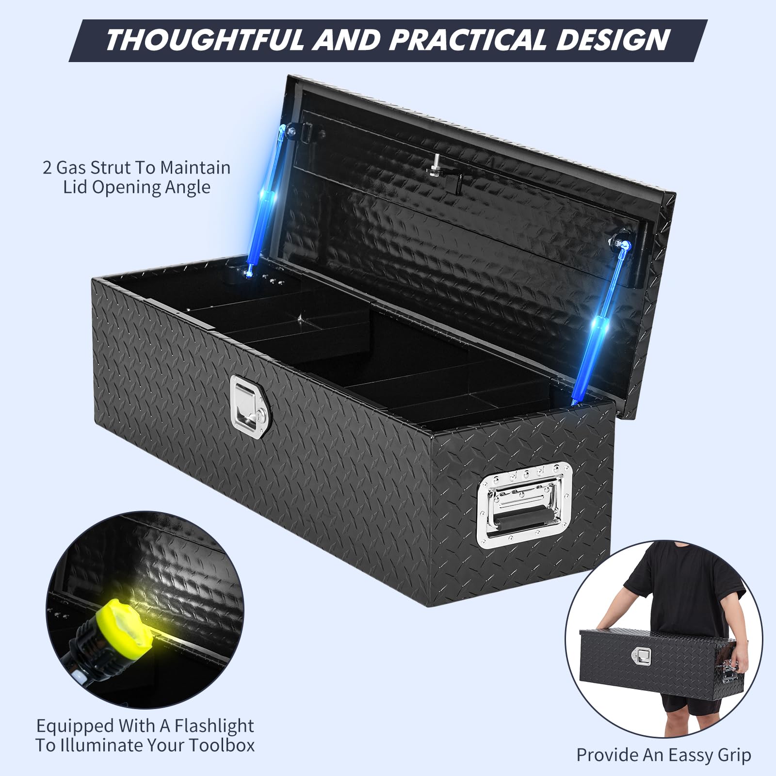 Elevate your truck's functionality with the GARVEE 30 Inch Truck Bed Tool Box. Designed for the professional who demands the best, this heavy-duty aluminum toolbox combines durability, security, and convenience in one sleek package.