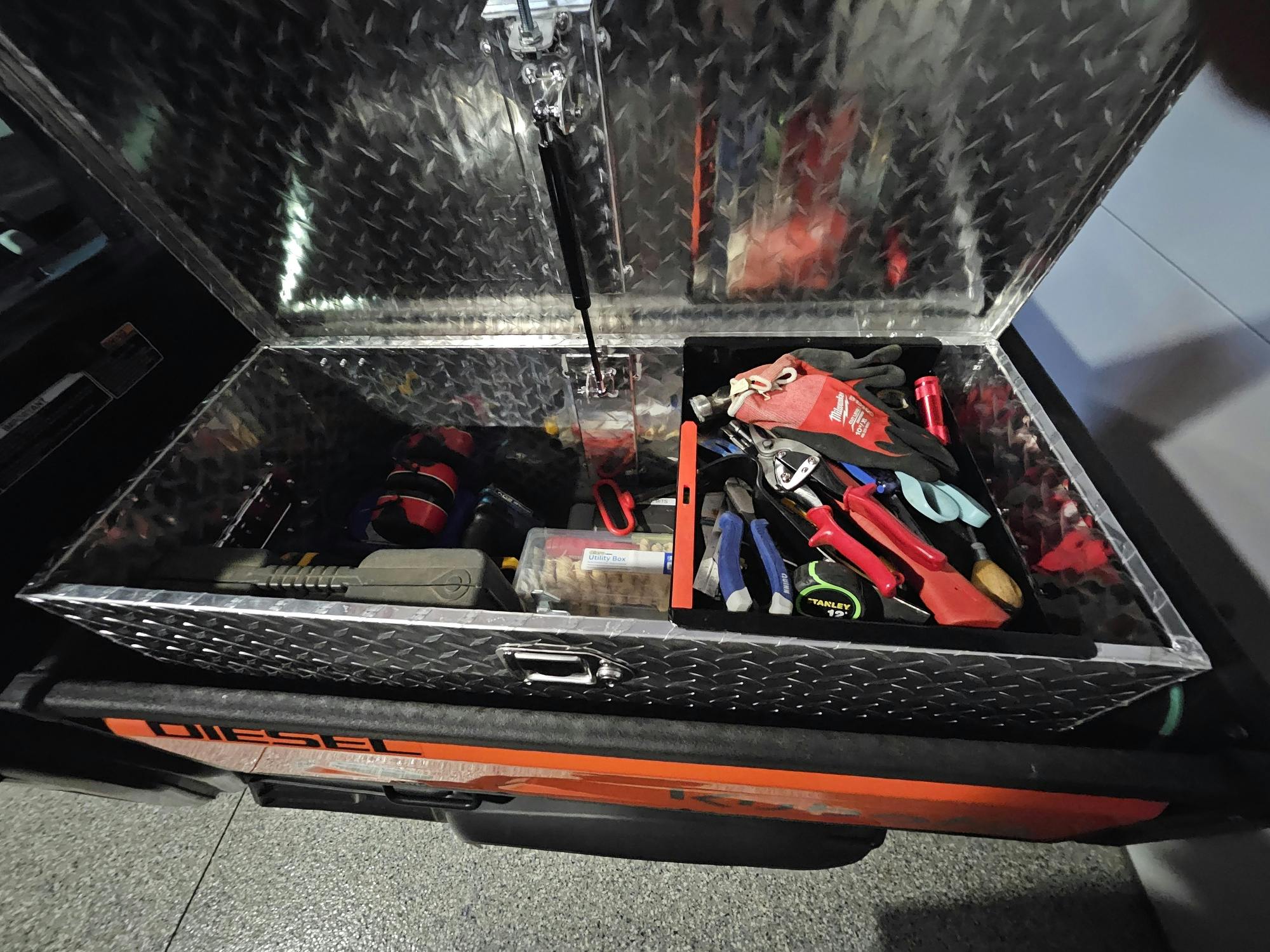 - LIFT WITH EASE: Features wider carrying handles on both sides, making the tool box easy to grip even with gloves on. Moreover, it comes with an easy-to-open-and-close gas strutted notched lid to assist with opening and closing, hold the lid in place and allow for a soft close.