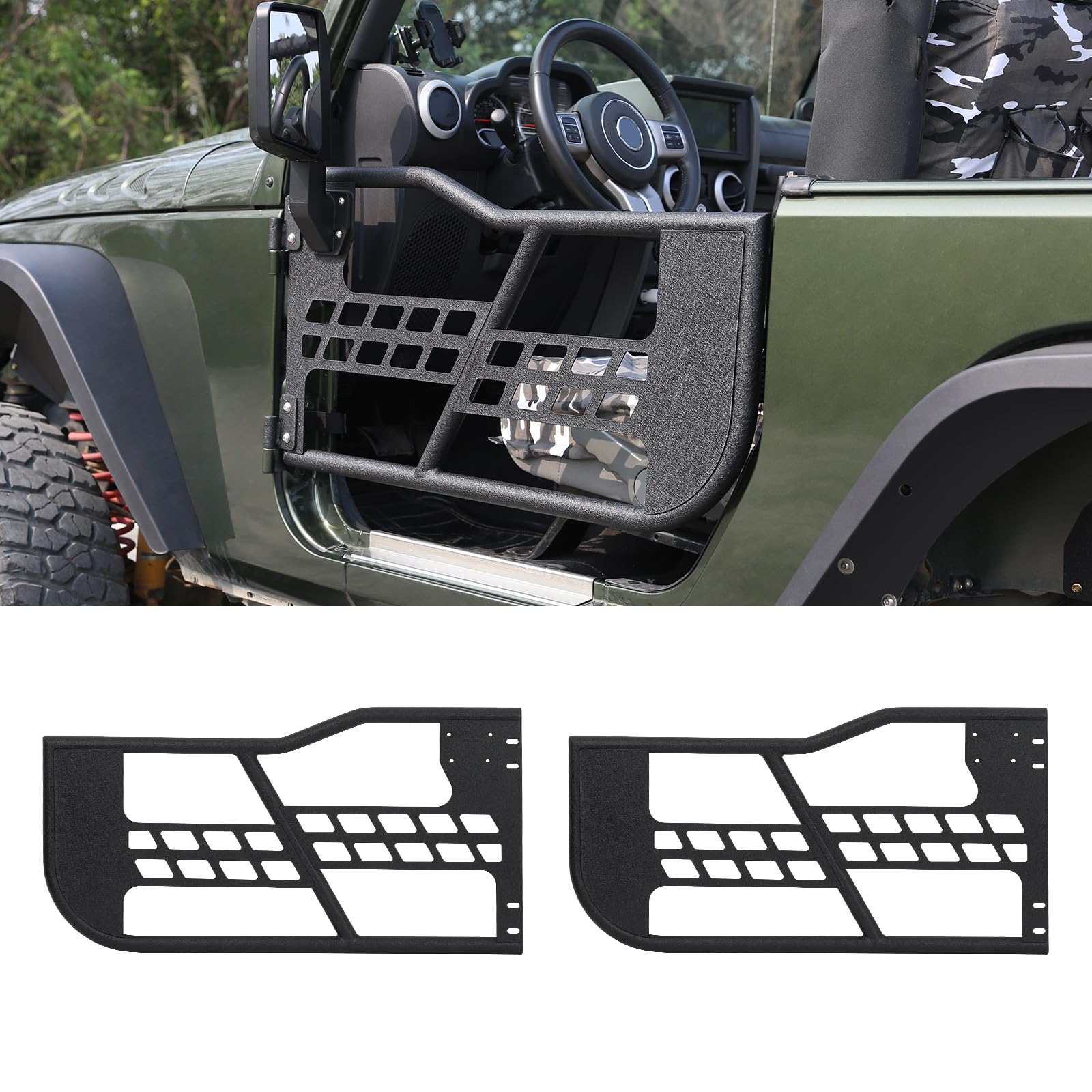 Garvee Off-Road Safari Tubular Doors Compatible with Jeep Wrangler JK 2007-2018 (2-Door Only) - Set of 2 Half Tube Doors for Offroad Trail Adventure