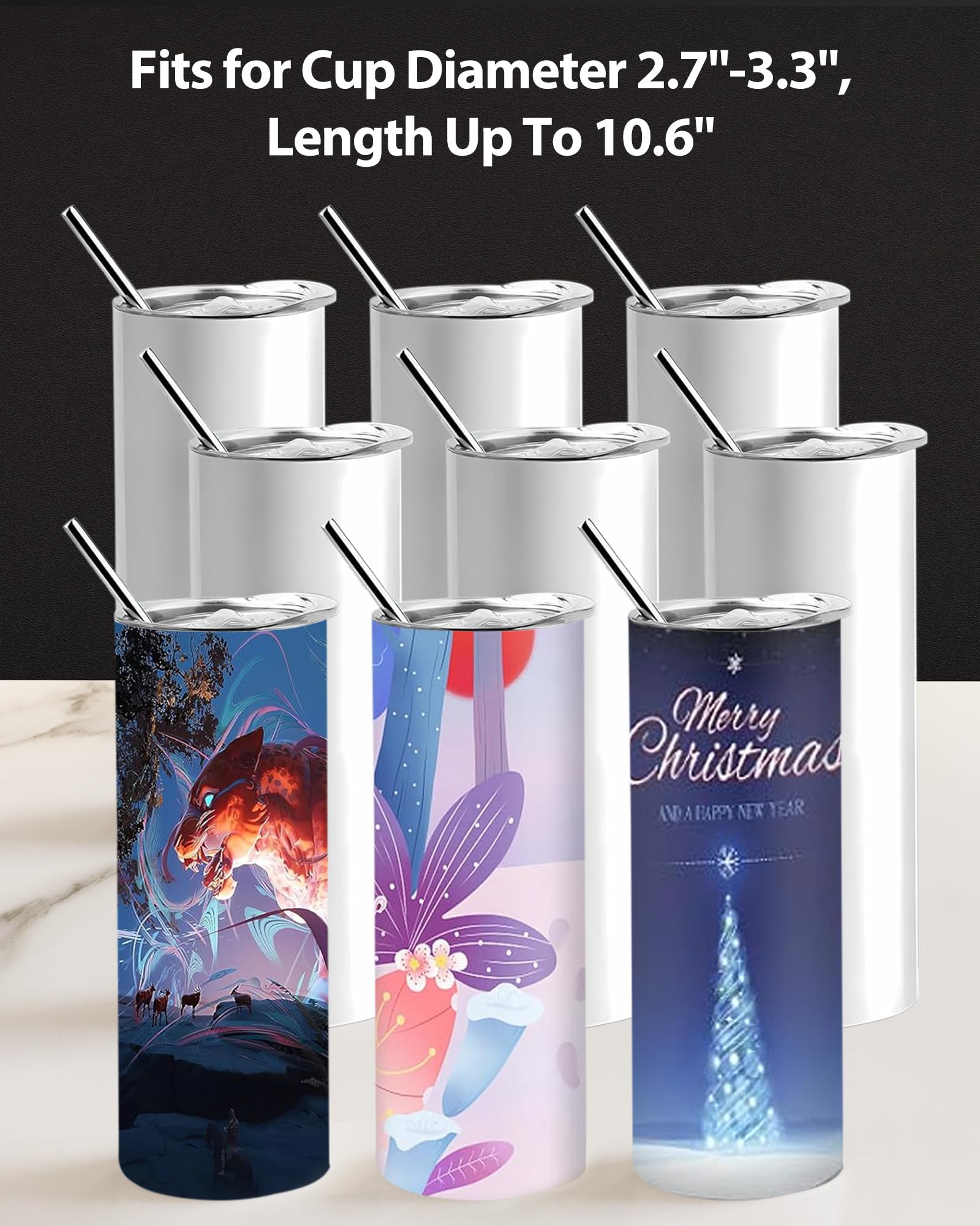 Accommodates 11oz to 30oz tumblers with full coverage. Print 2 pieces of 11-15oz mugs simultaneously!
