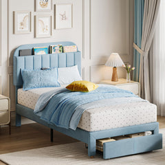 GARVEE Twin Bed Frame with Under-Bed Drawer and Storage Headborad