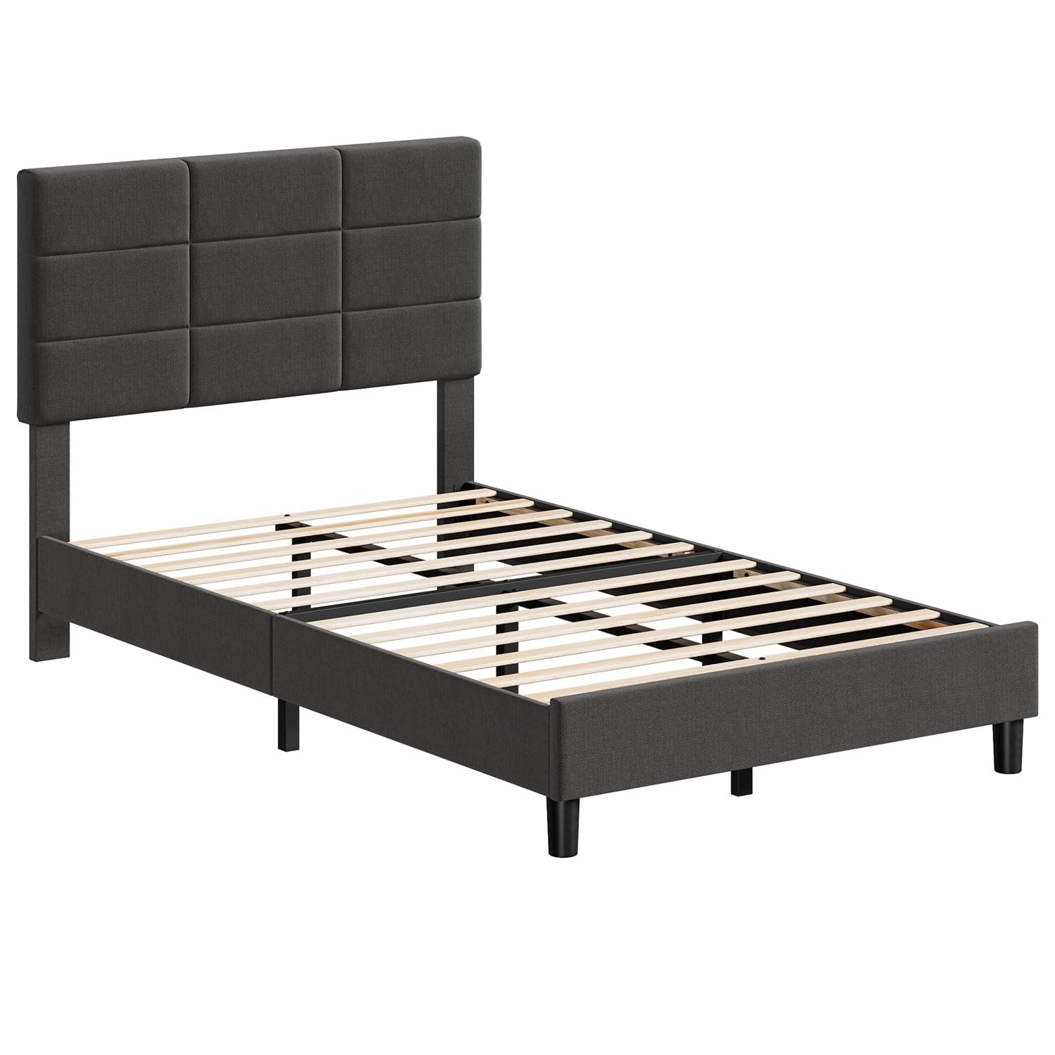 Garvee Twin Bed Frame with Headboard, Linen Upholstered Twin Bed Frames with Solid Wooden Slats Support, No Box Spring Needed, Noise-Free, Grey
