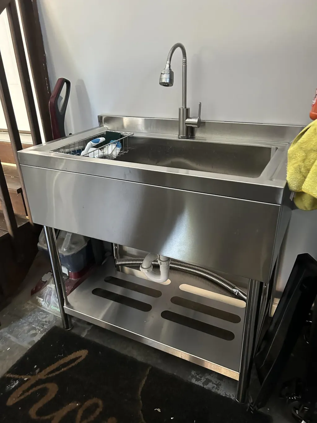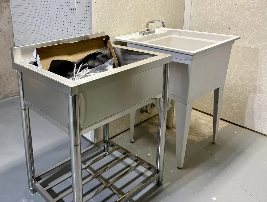 - 【Wide Application with Stability and Convenience】Ideal for kitchens, laundry rooms, food trucks, garages, and farms, this freestanding stainless steel sink offers excellent versatility. Equipped with stable leveling feet and a compact design that fits various indoor and outdoor spaces, installation is fast with no drilling required.