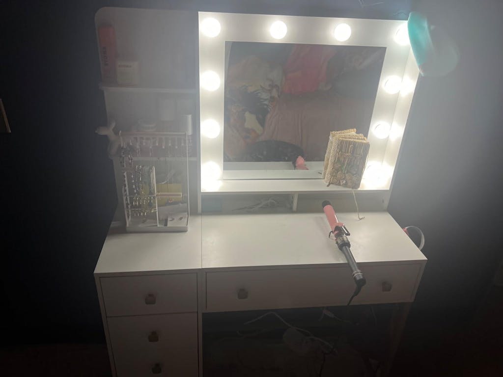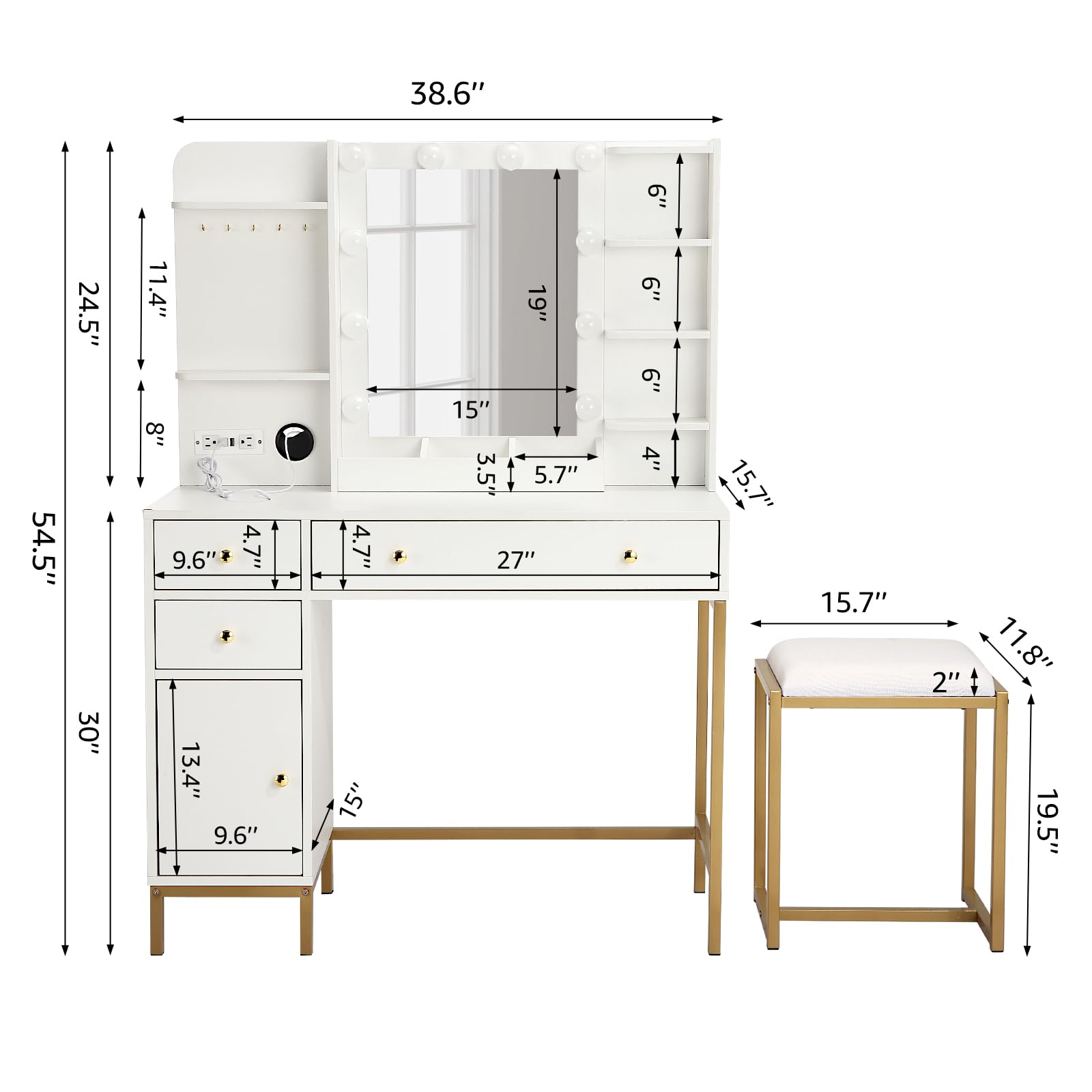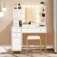 - Makeup Table with LED Light Mirror: Our Vanity Desk with Mirror offers 10 three-color adjustable LED bulbs. Choose between warm, cool, or natural light tones to achieve your desired look with precision and accuracy.