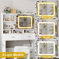 - Makeup Every Time: Enhance your beauty routine with the makeup vanity desk equipped with adjustable LED lights in 3 light modes. Touch the switch to change the color mode, or long press the switch to adjust the brightness. Create the perfect lighting ambiance to enjoy makeup every day.