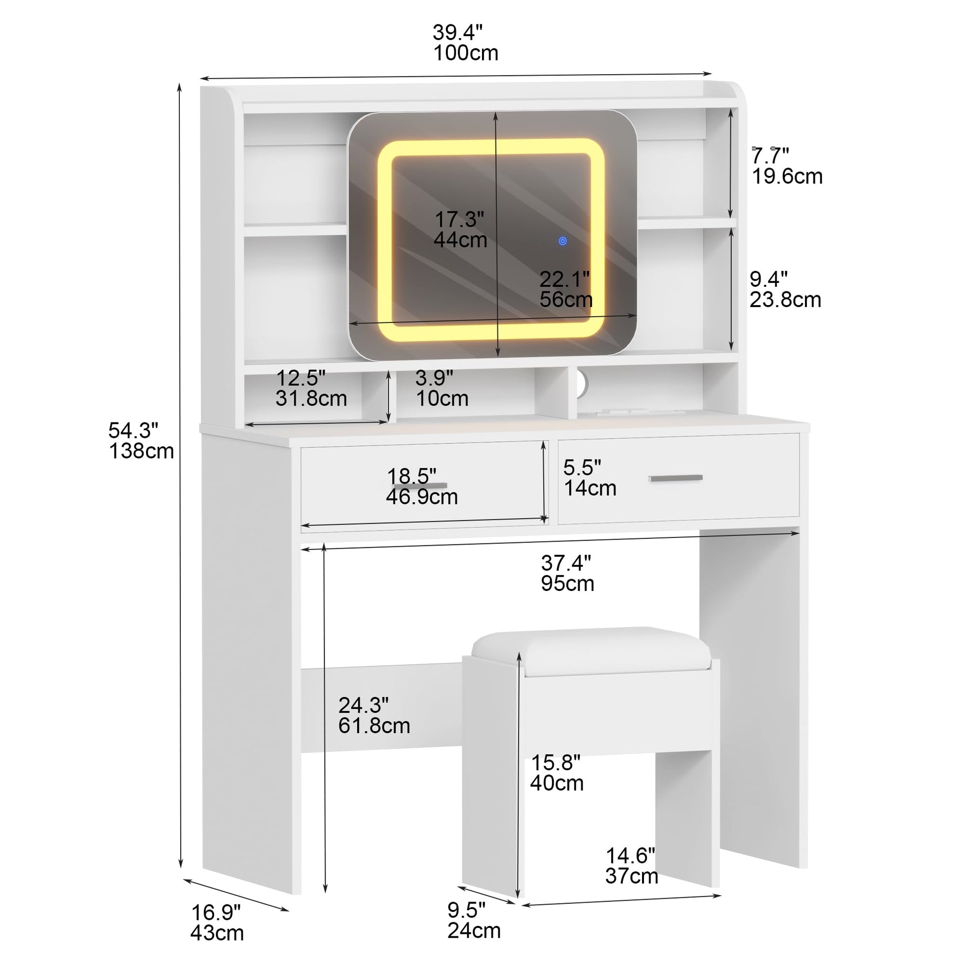 - Perfectly Sized for Any Room: This vanity desk measures 15.8"(D) x 39.4"(W) x 54.3"(H) and comes with a comfortable stool measuring 9.5"(D) x 14.6"(W) x 15.8"(H). Ideal for any bedroom or dressing area, it’s also a thoughtful gift for any occasion.