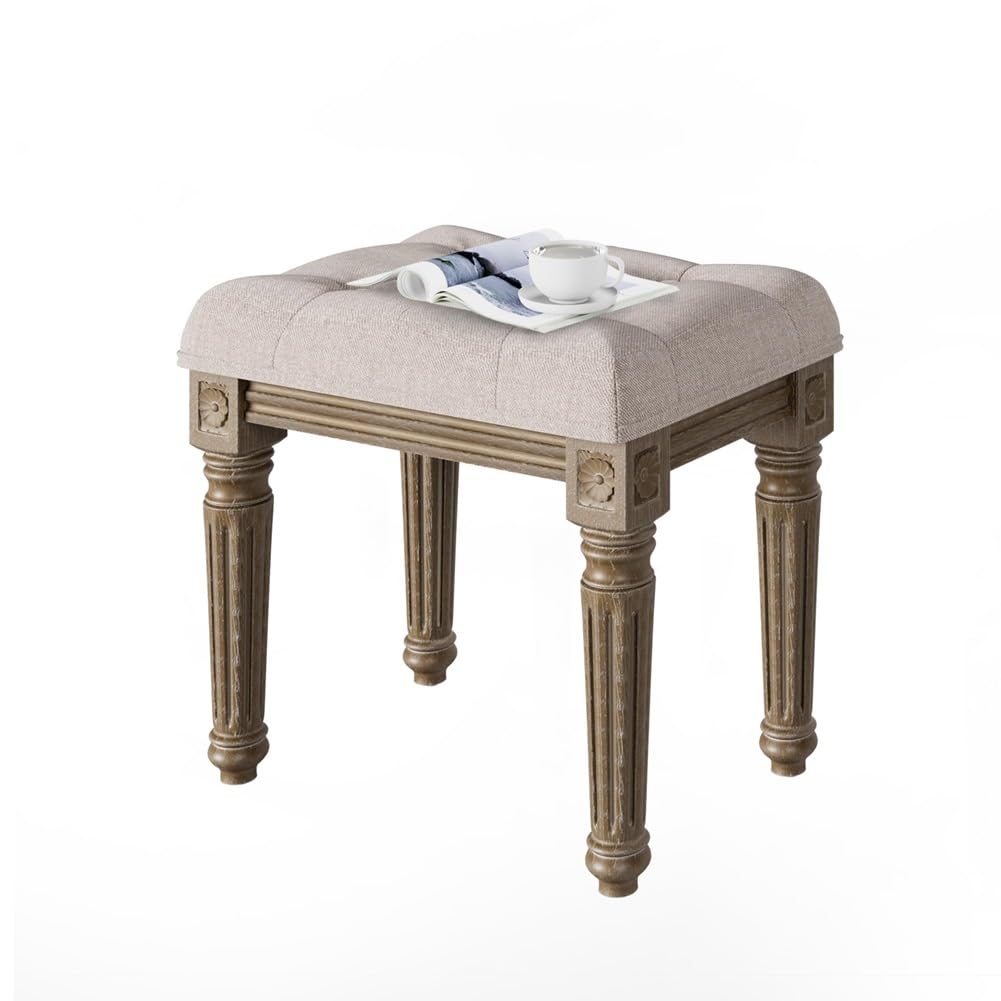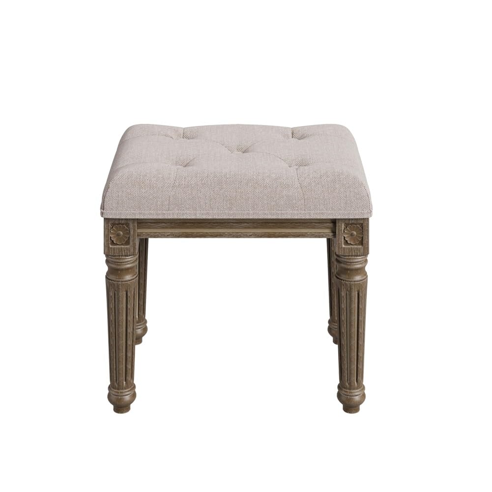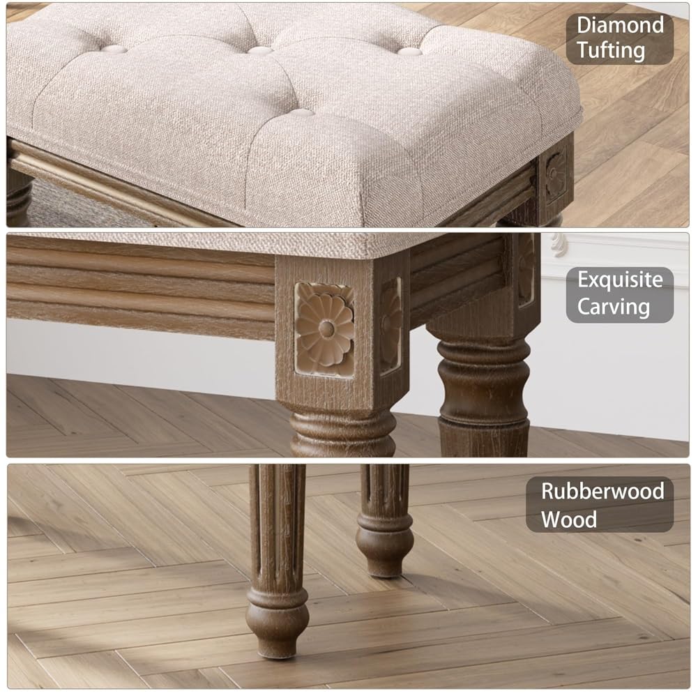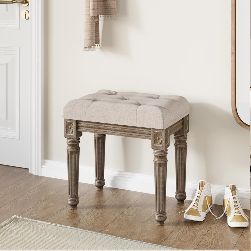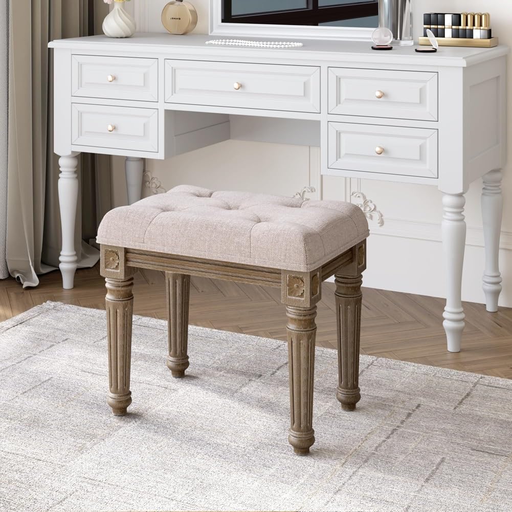 Garvee Vanity Stool Upholstered Ottoman Bench, Soft Cushion, Rustic Wood, Vintage Style, Easy Assembly, Beige, Living Room, Bedroom