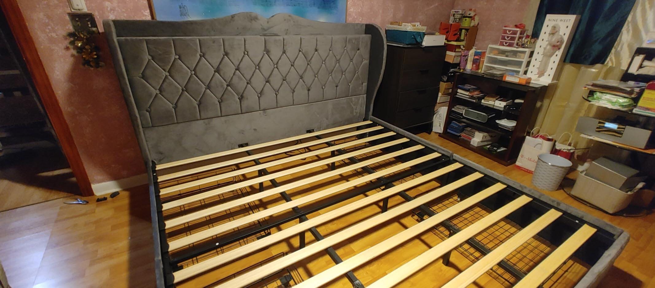 Keep your essentials within arm's reach with our built-in storage shelf and charging station. The luxurious wingback design and tall, padded headboard not only offer unparalleled comfort but also add a touch of sophistication to your bedroom decor. Experience the perfect blend of functionality and style with the GARVEE Queen Bed Frame.