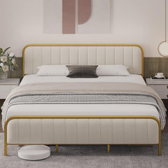 The GARVEE bed frame combines a modern velvet-tufted headboard with a sturdy gold frame, creating a striking visual impact. Its easy assembly process and included tools make setup a breeze, allowing you to enjoy your new bed in no time.