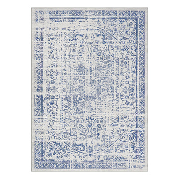 Garvee Vintage Area Rug, 4x6 Stain Resistant Carpet Non Shedding Non-Slip Soft Rug Bedroom Dining Room or Home Office, Low Pile Farmhouse Oriental Indoor Floor Carpet Blue