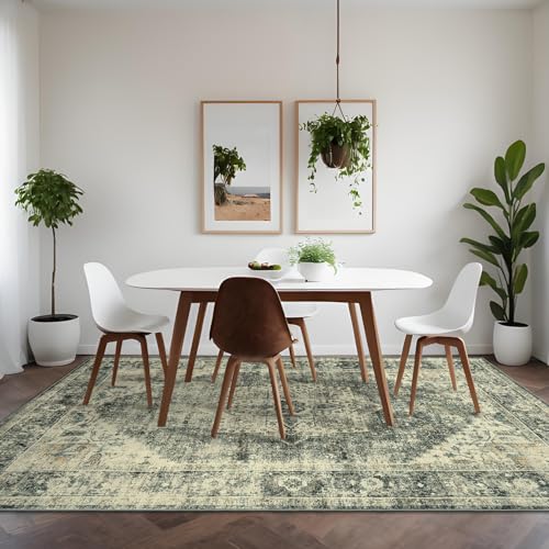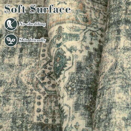 Garvee Vintage Area Rug, 4x6 Stain Resistant Carpet Non Shedding Non-Slip Soft Rug Bedroom Dining Room Home Office, Low Pile Farmhouse Oriental Indoor Floor Rug Brown Green
