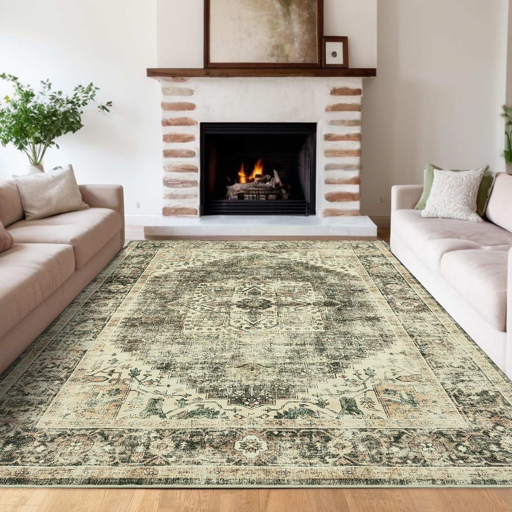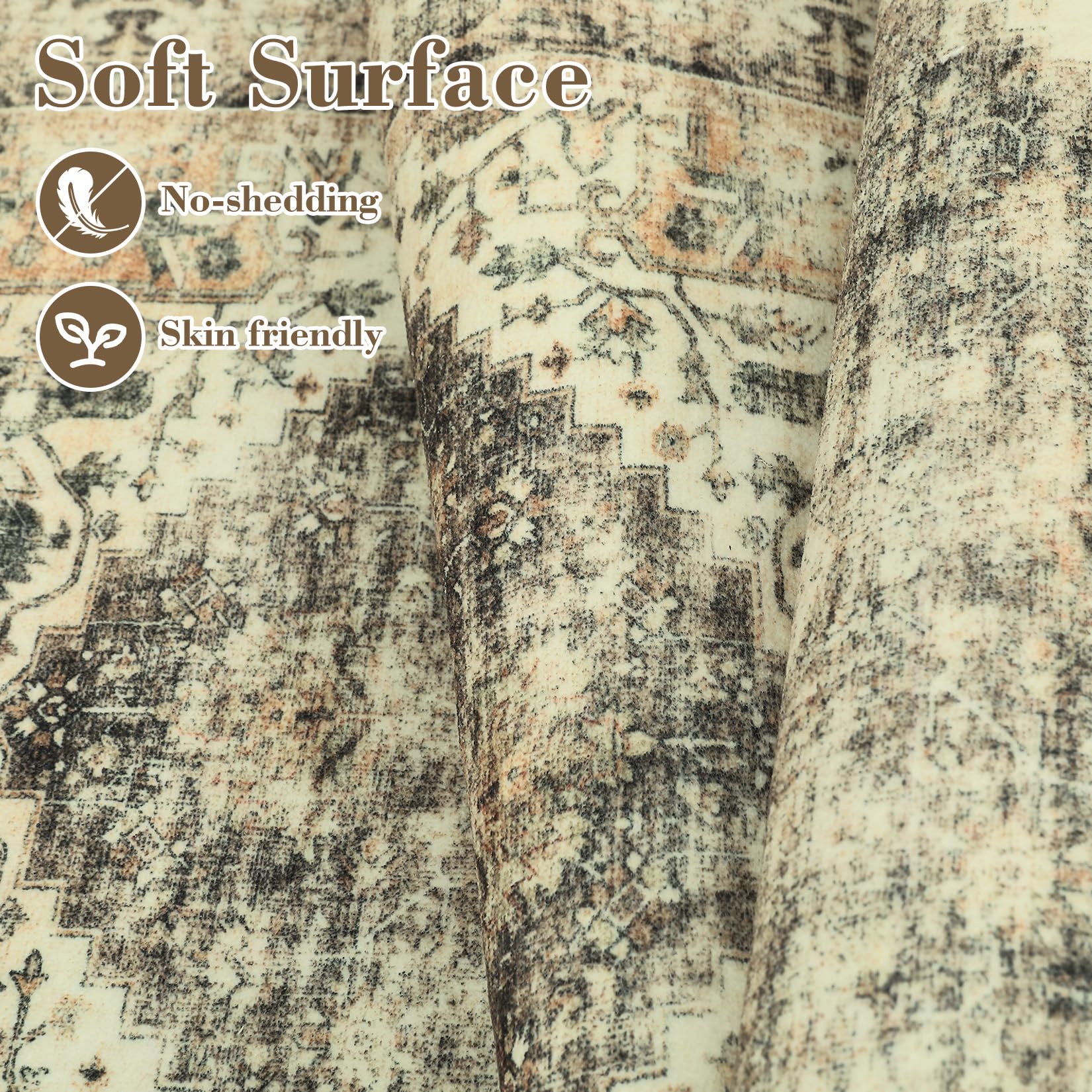 Garvee Vintage Area Rug, 4x6 Stain Resistant Carpet Non Shedding Non-Slip Soft Rug Bedroom Dining Room Home Office, Low Pile Farmhouse Oriental Indoor Floor Rug Brown