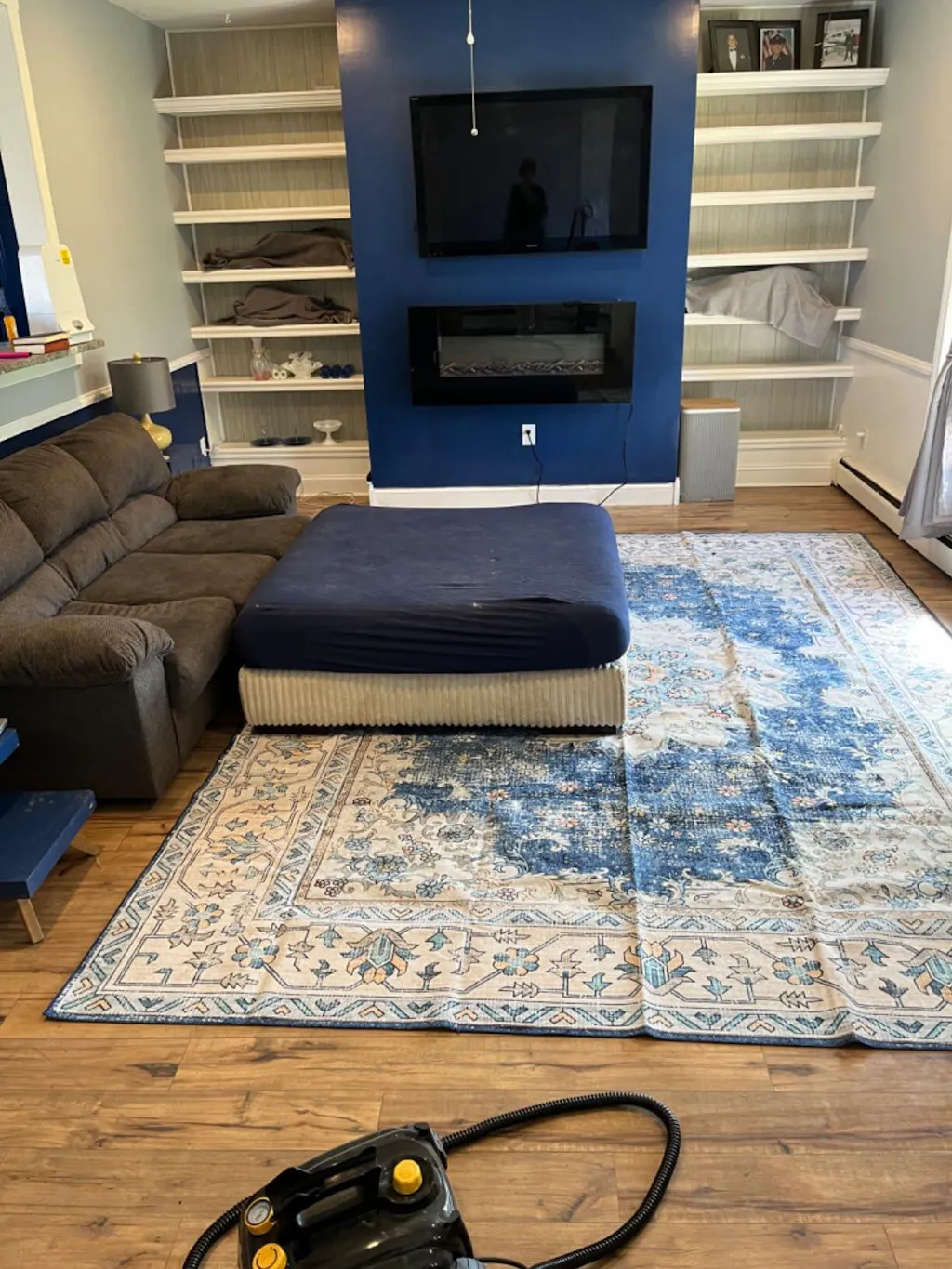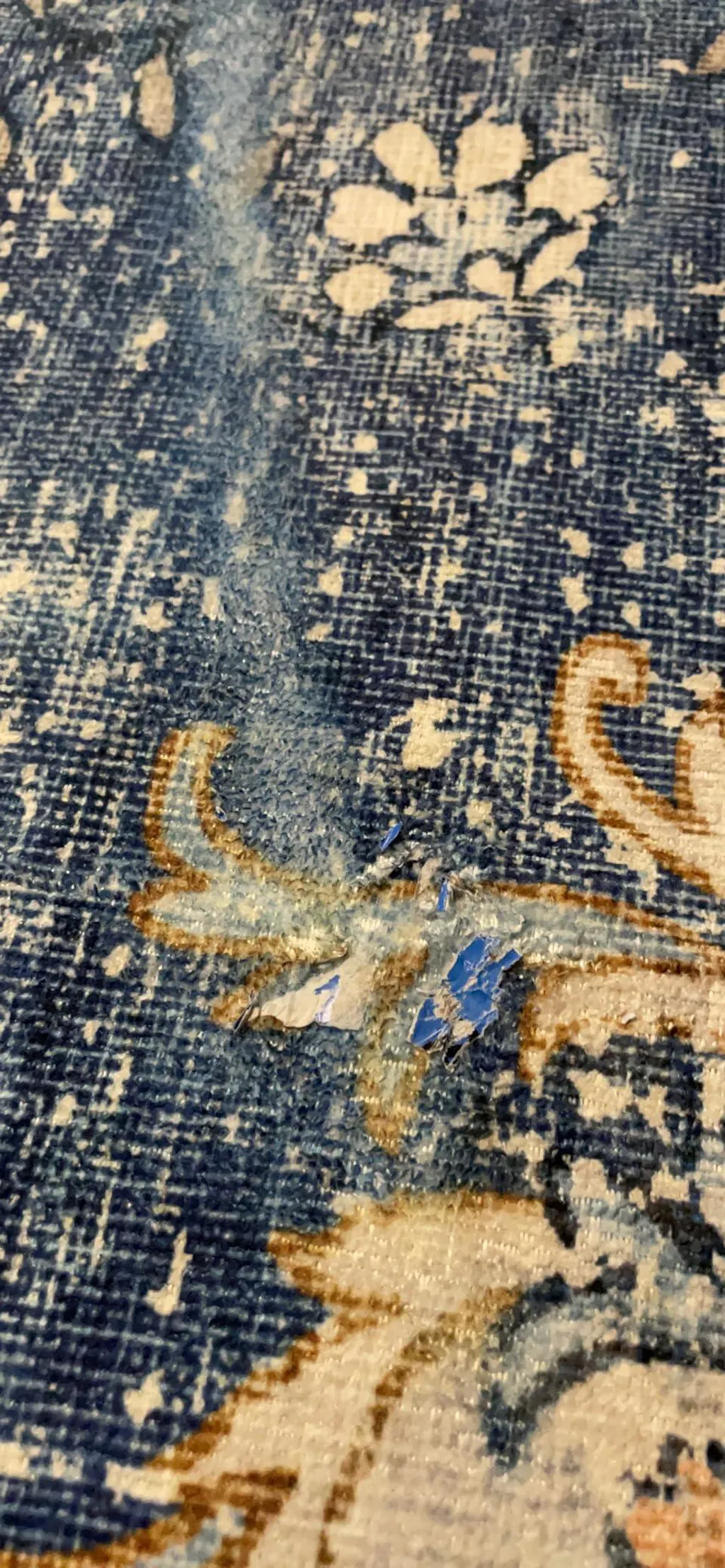 Alfombra azul con estampado floral